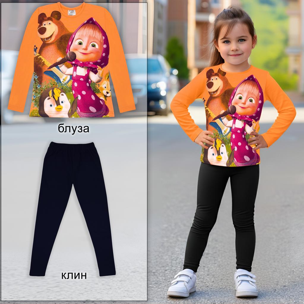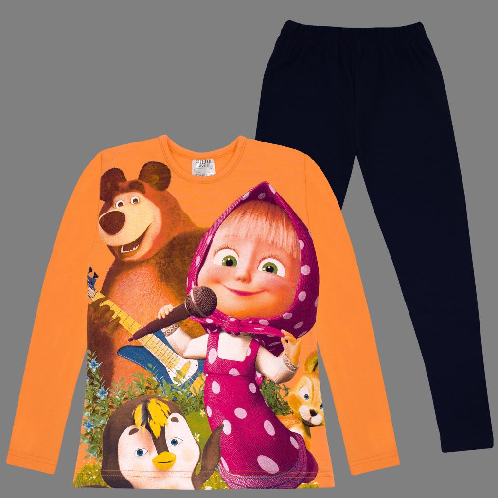 Комплект тънък 2 части (б/к) Маша и Мечока в оранжево