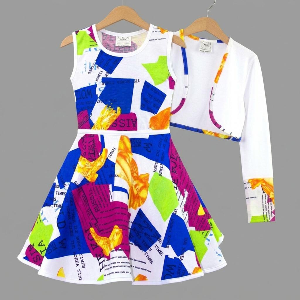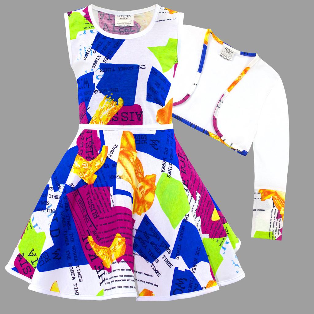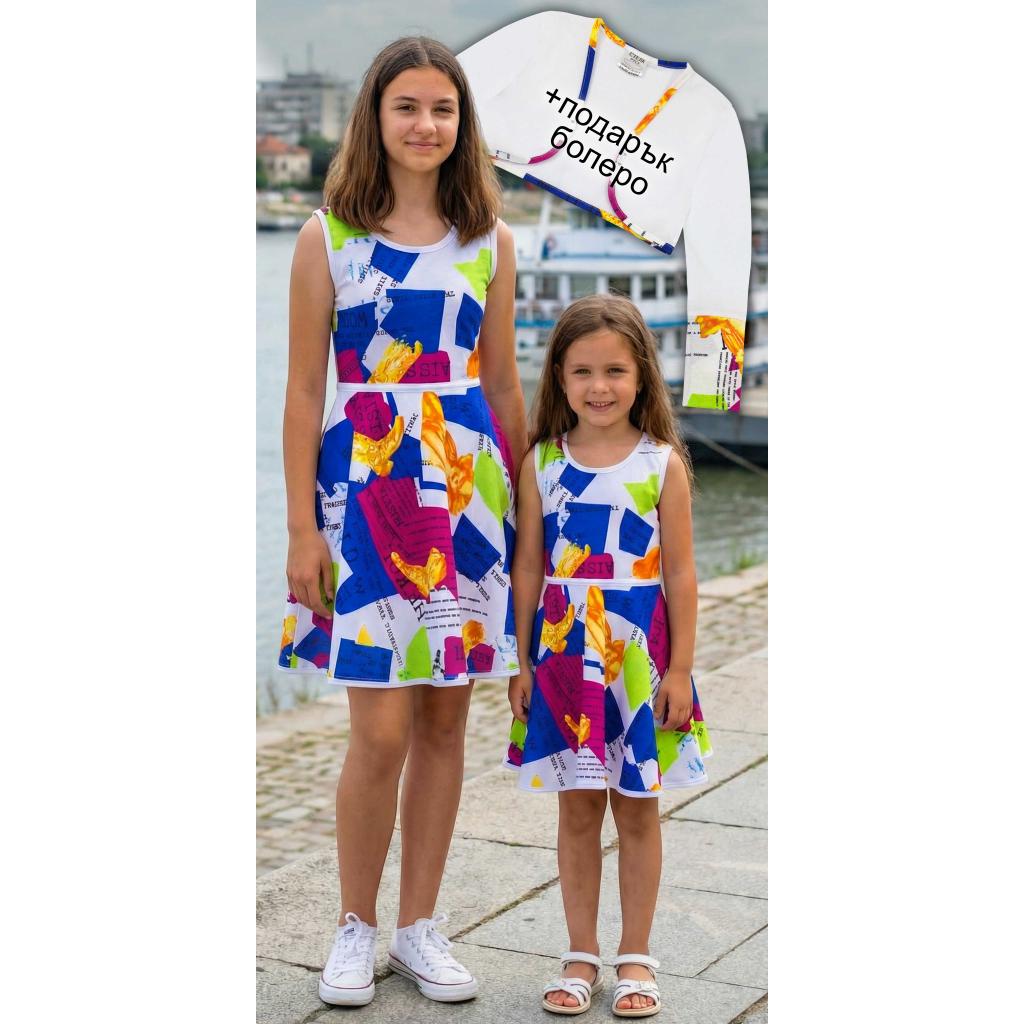 Рокля с болеро в пъстри цветове и букви ( бяло )