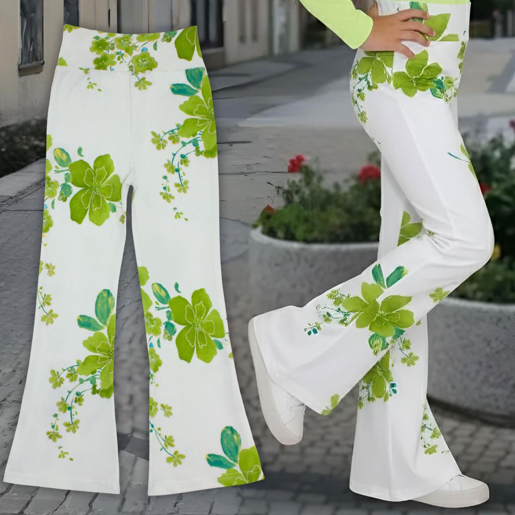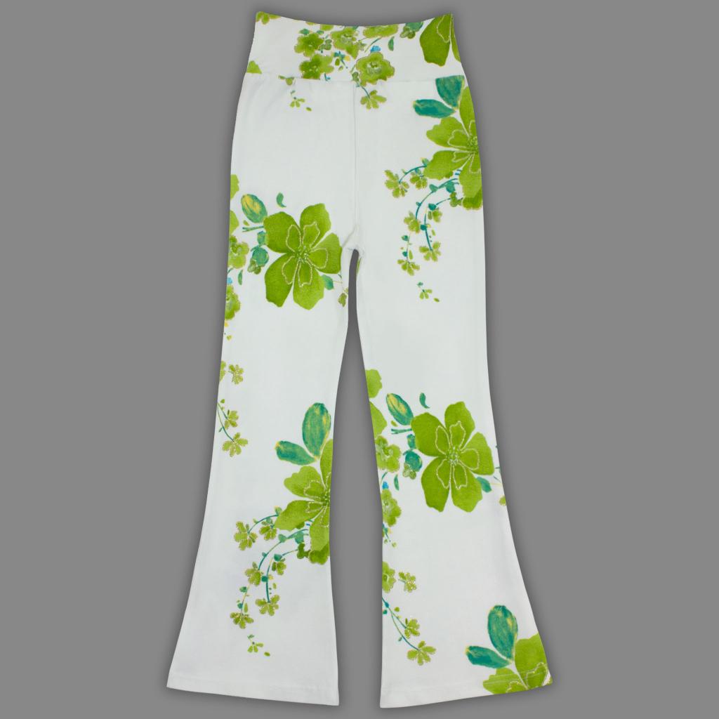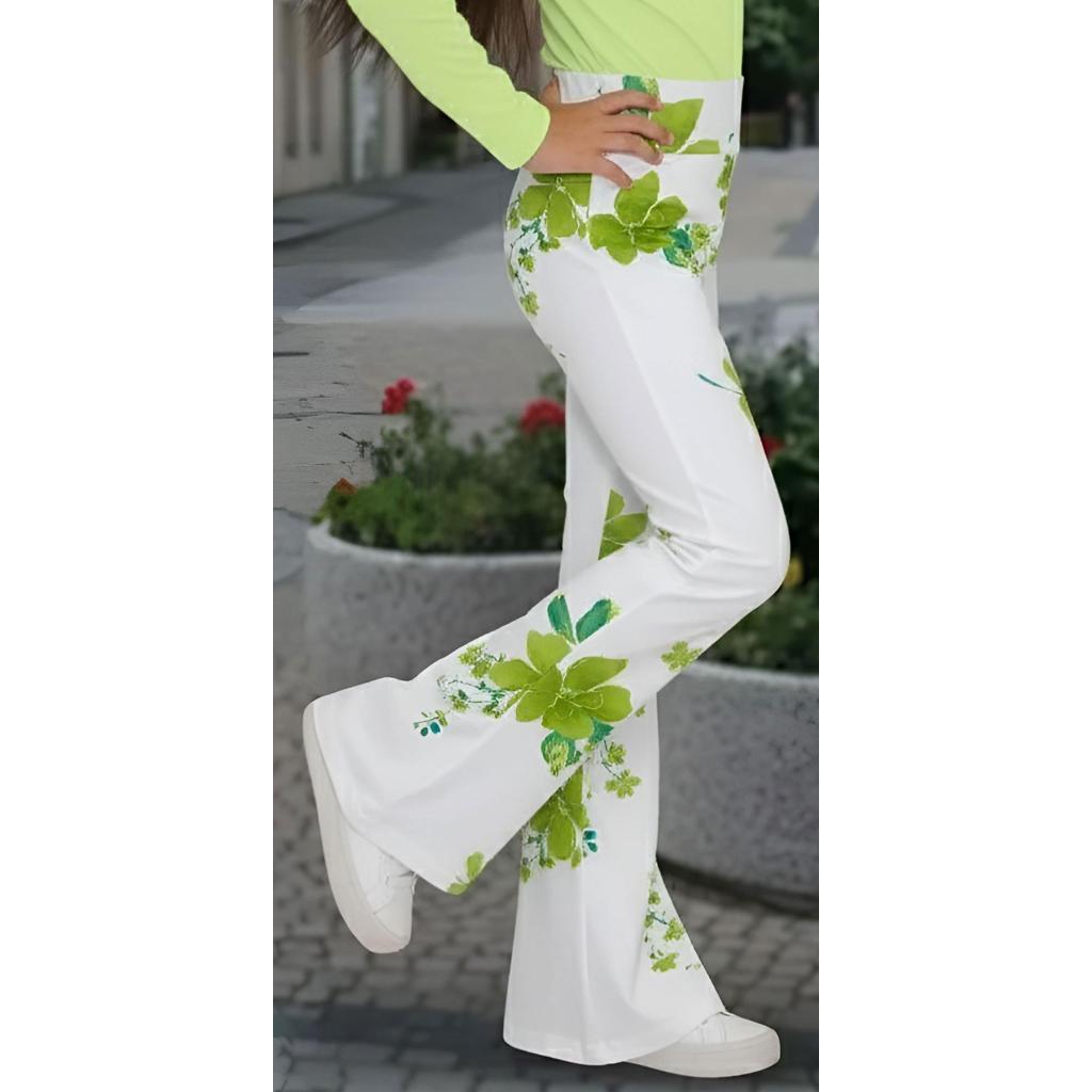 Този бял панталон чарлстон с резедави цветя и зелени листенца е истински моден разцвет! Перфектен за малки госпожици, които искат да са стилни, свежи и забележими. Лекият разкроен силует и ефирната визия носят усещане за свобода и слънчеви дни!