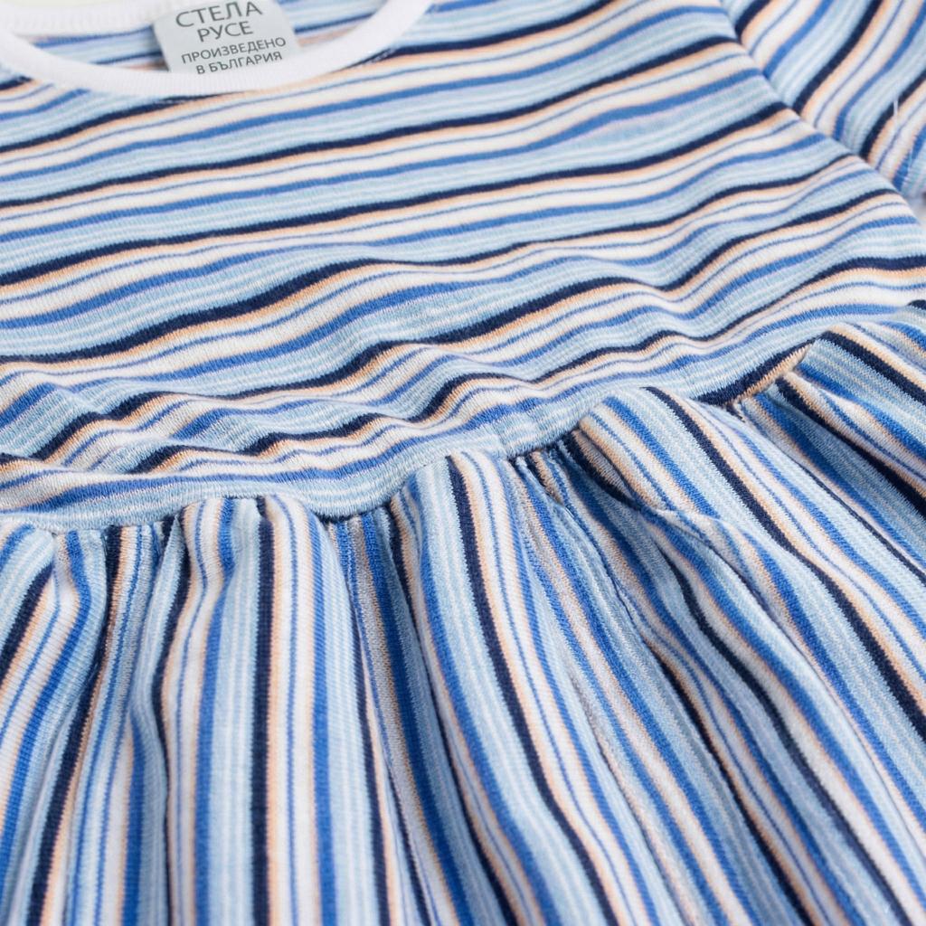 Стилна и удобна детска рокля с райе, която никога не излиза от мода! Моделът е разкроен от талията надолу, което придава красива, ефирна линия и създава усещане за лекота при всяко движение.