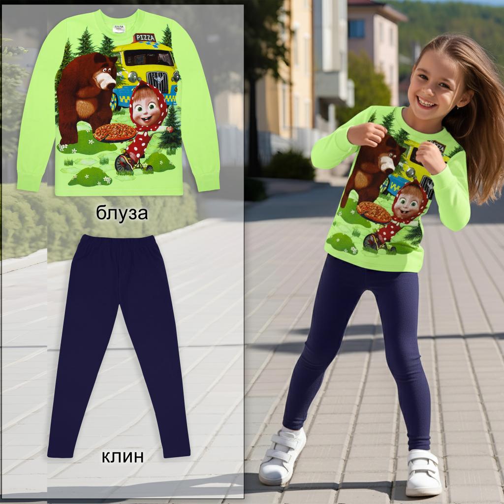 Комплект тънък 2 части (б/к) Маша и Мечока в резеда