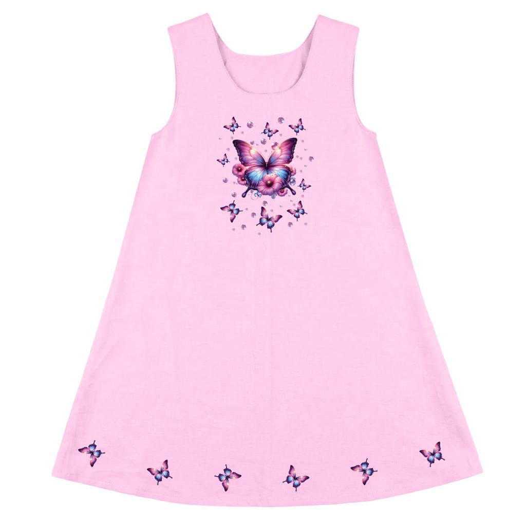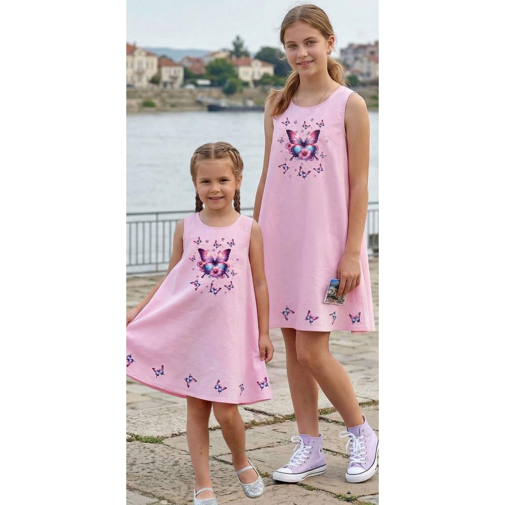 Рокля трапец с пеперуди в розово