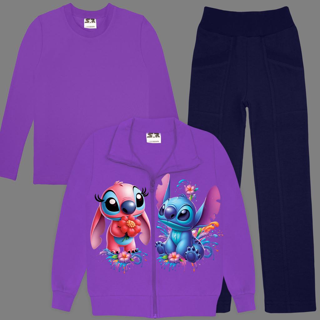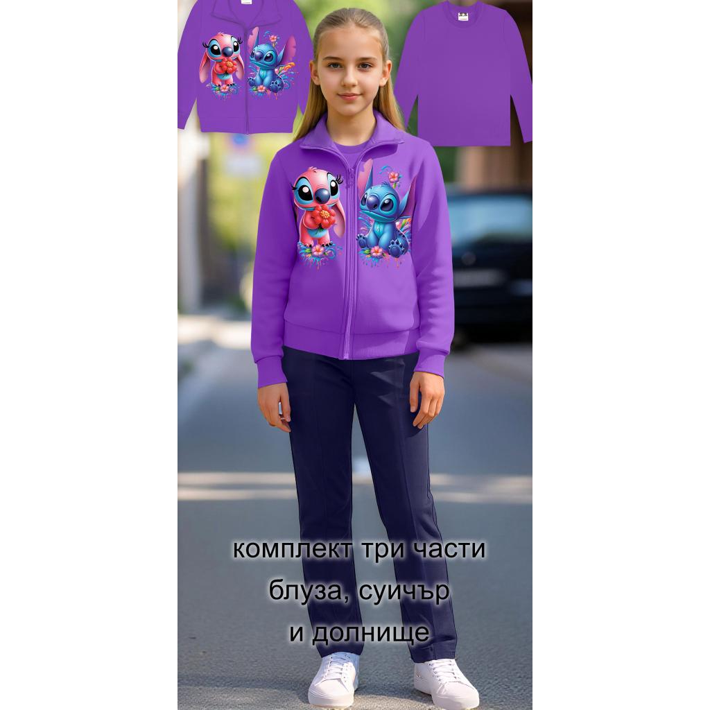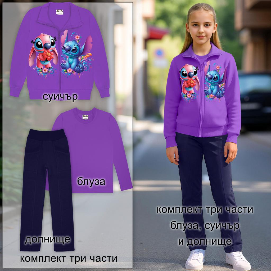 Комплект плътен 3 части (с/б/д) Стич в виолетово