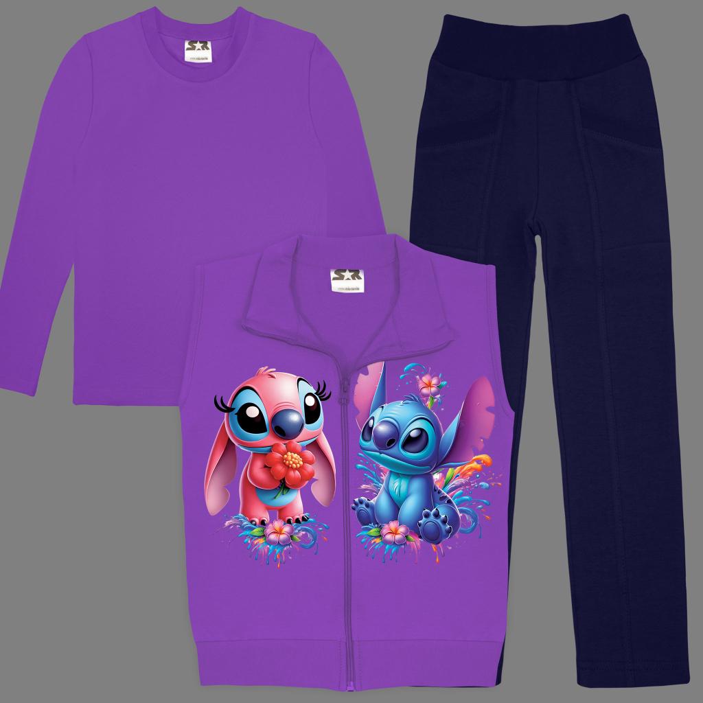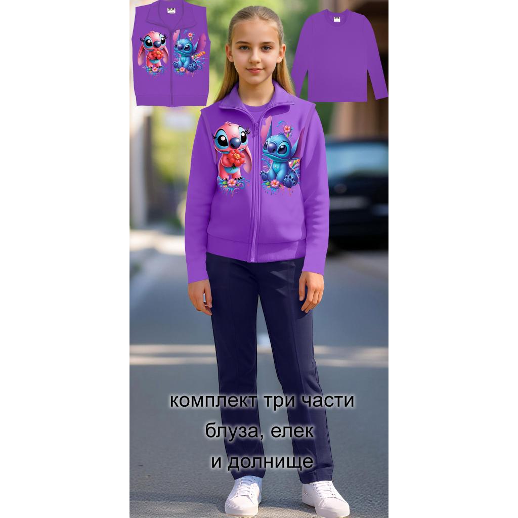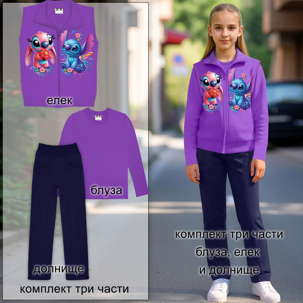 Комплект плътен 3 части (б/е/д) Стич в виолетово
