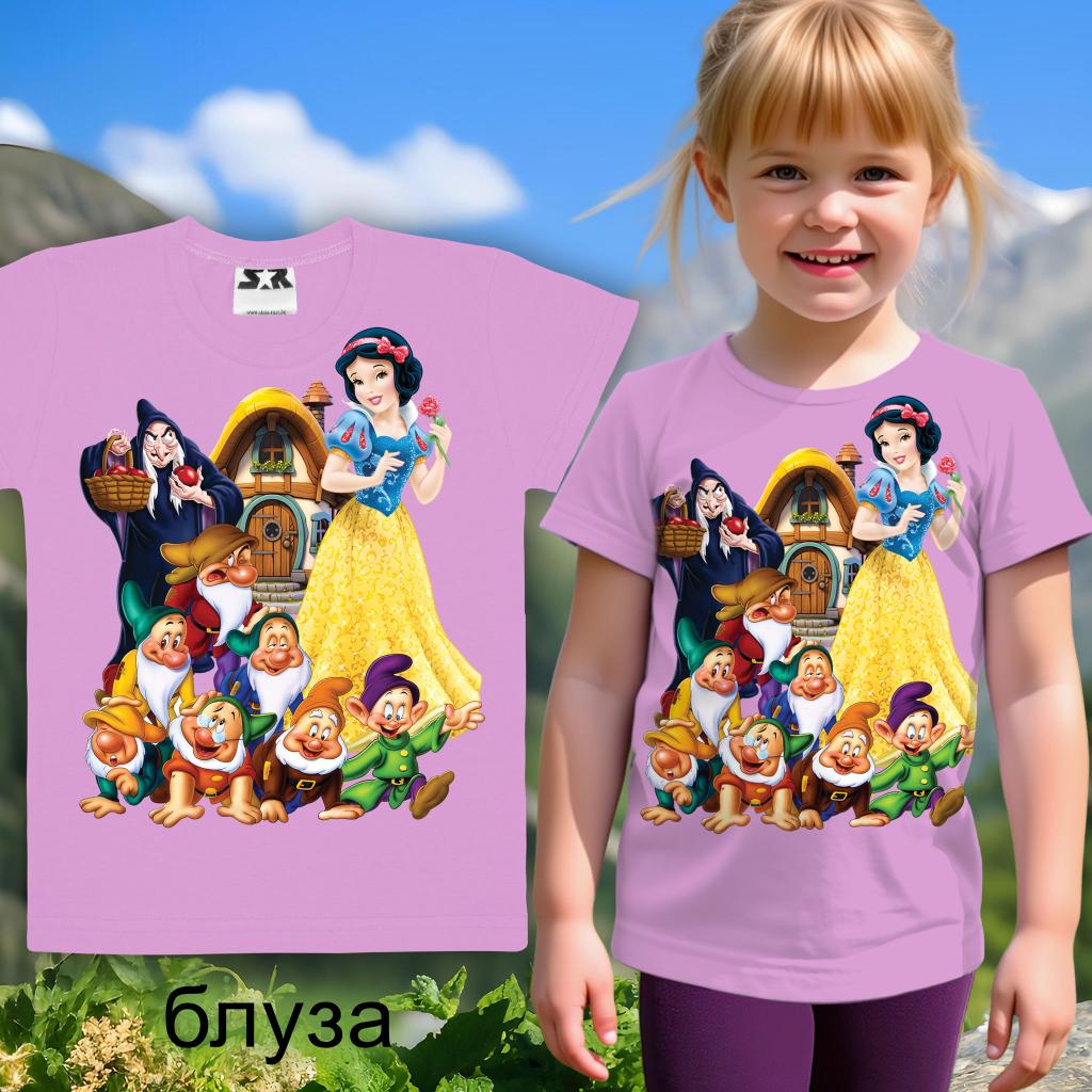 Тази очарователна тениска пренася вашето дете в света на Снежанка и нейните верни джуджета – директно от любимата класическа приказка! 📖