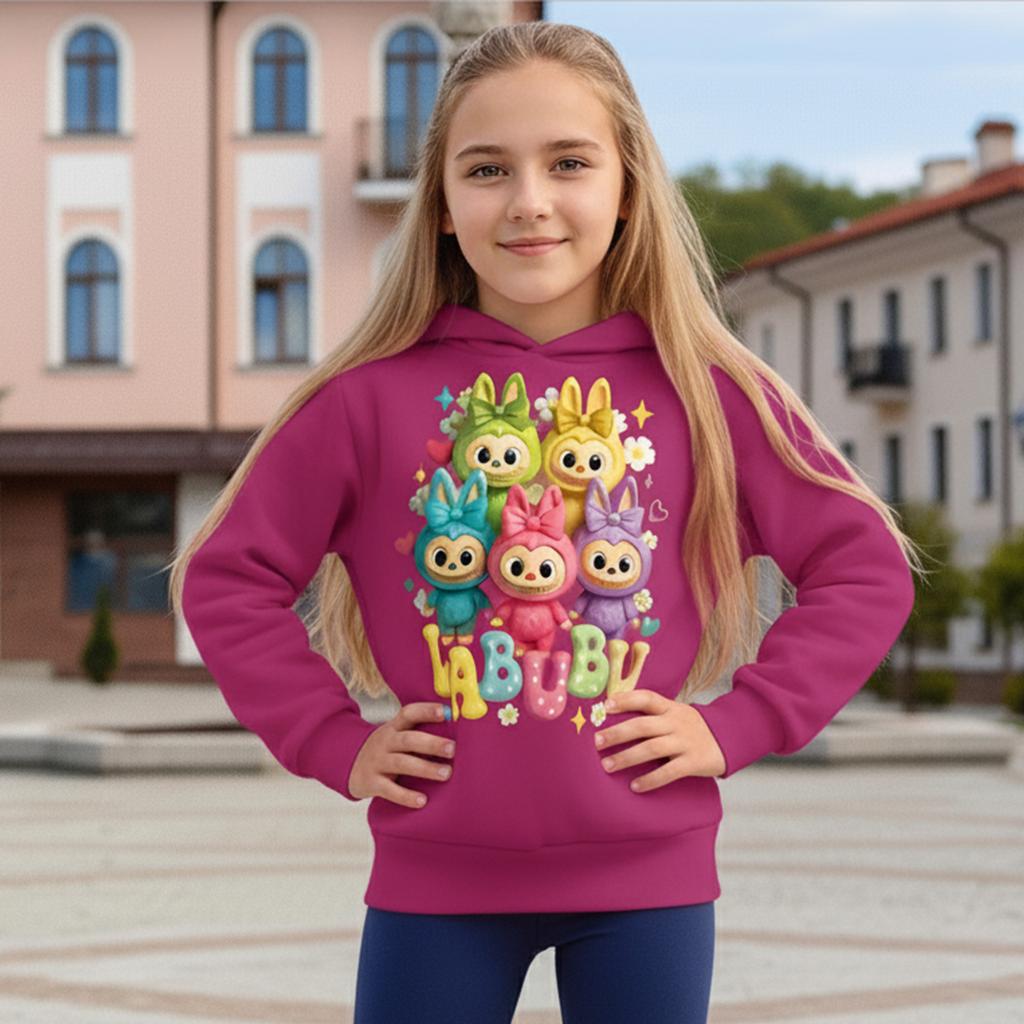 Твоето дете ще засияе с този пухкав суичър в розово с любимите весели Лабубу герои! 🩷 Цветни, забавни и винаги усмихнати – те носят настроение навсякъде. Подходящ за разходки, игри и весели дни в училище или у дома.