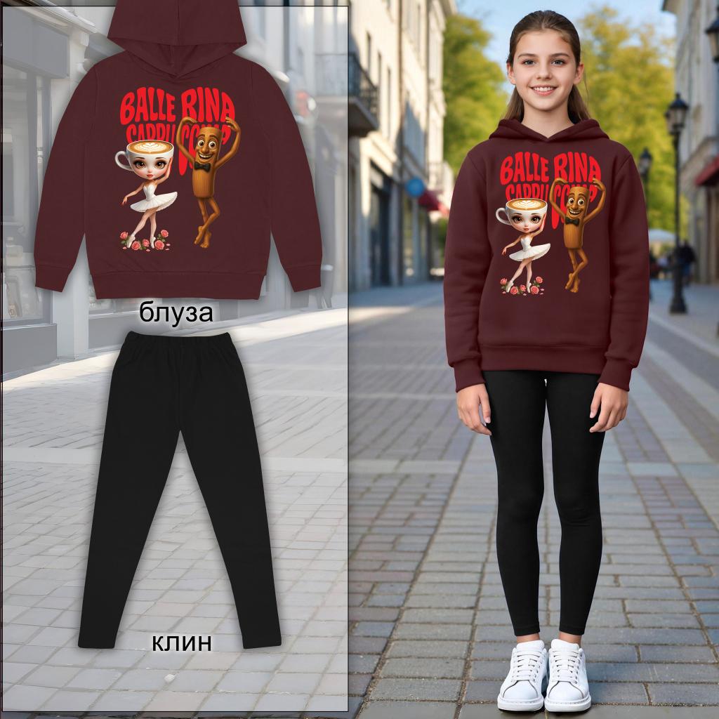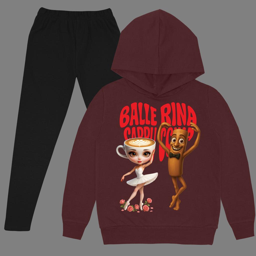 Супер комбо за игри и настроение! 🎉 Бордото суичърче с качулка и веселите герои Балерина и Tung Tung идва в комплект с удобен тъмен клин – перфектна комбинация за танци, разходки и смях! 💃☕🕺 Децата ще го обожават, а родителите ще харесат удобството и практичността.