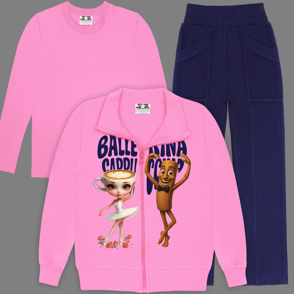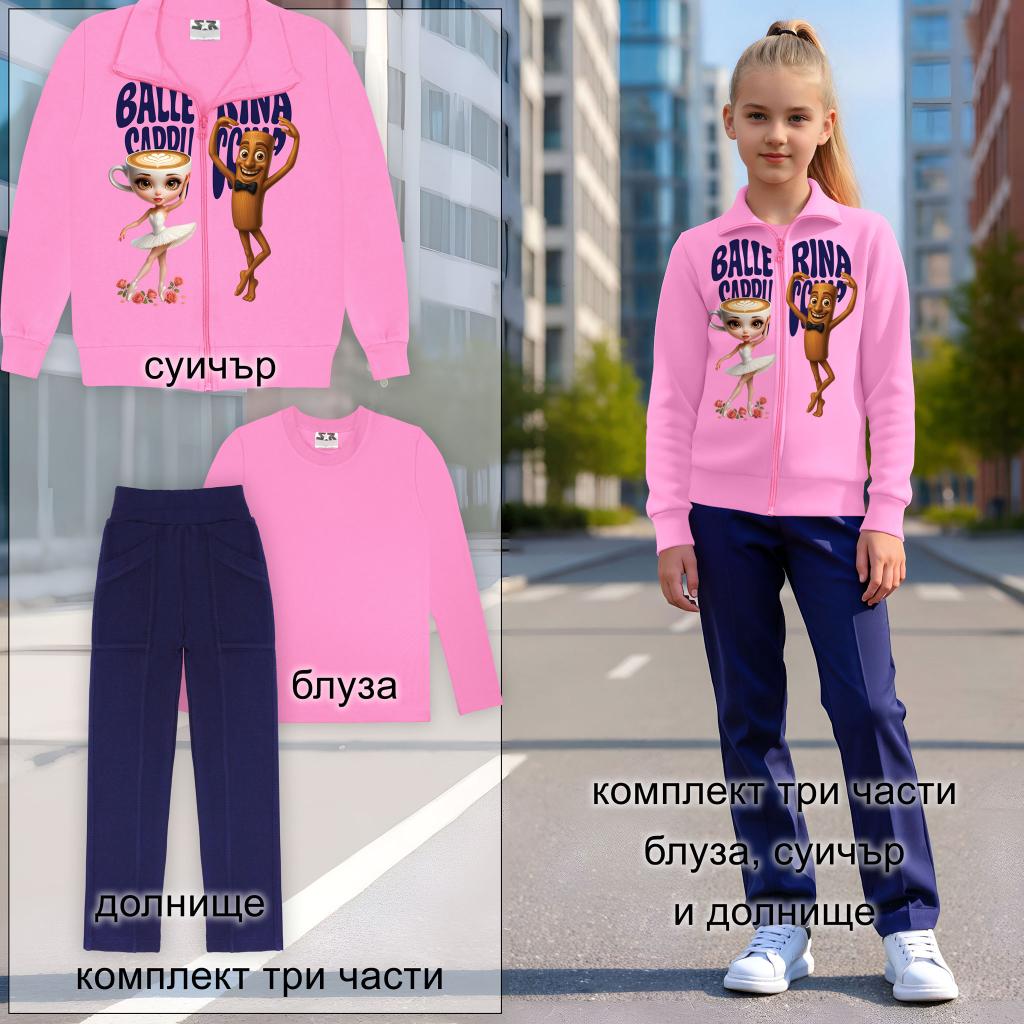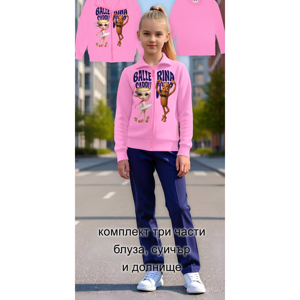 💖☕ Ballerina & Cappuccina комплект – розова блуза + тъмно долнище + суичър! 🌸💃