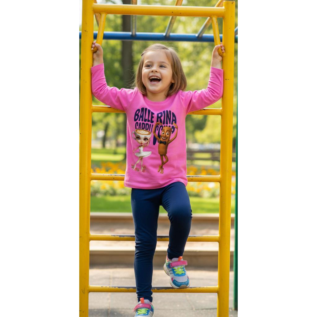 💃☕ Красота и удобство в едно! Розовата блуза с уникалния принт „Балерина Капучина“ носи усмивка и настроение, а тъмният клин я допълва с изчистен стил и комфорт. Подходящ за училище, игри и разходки – сет, който всяко момиче ще обикне! 🎀