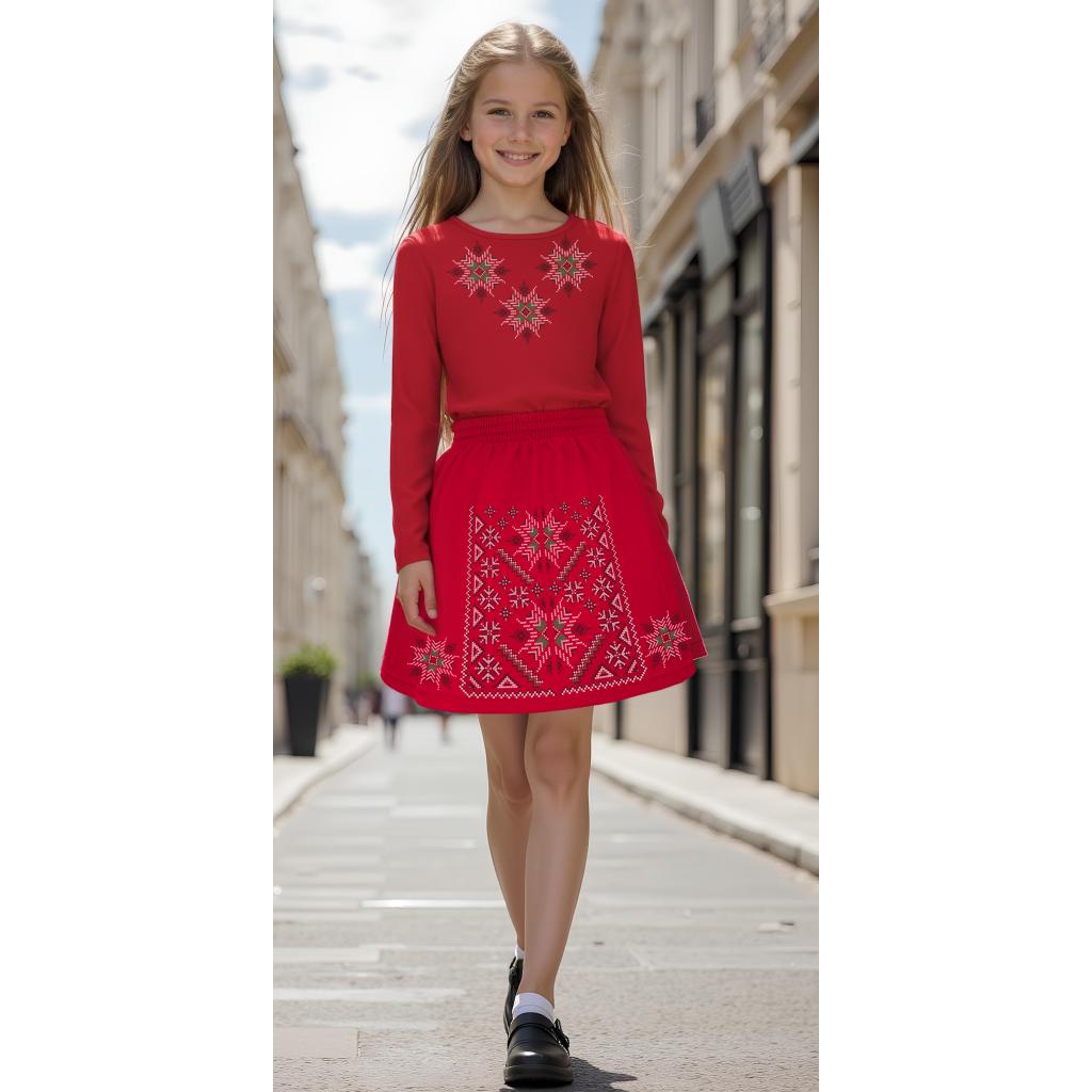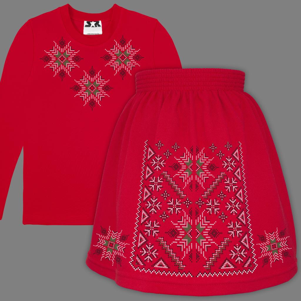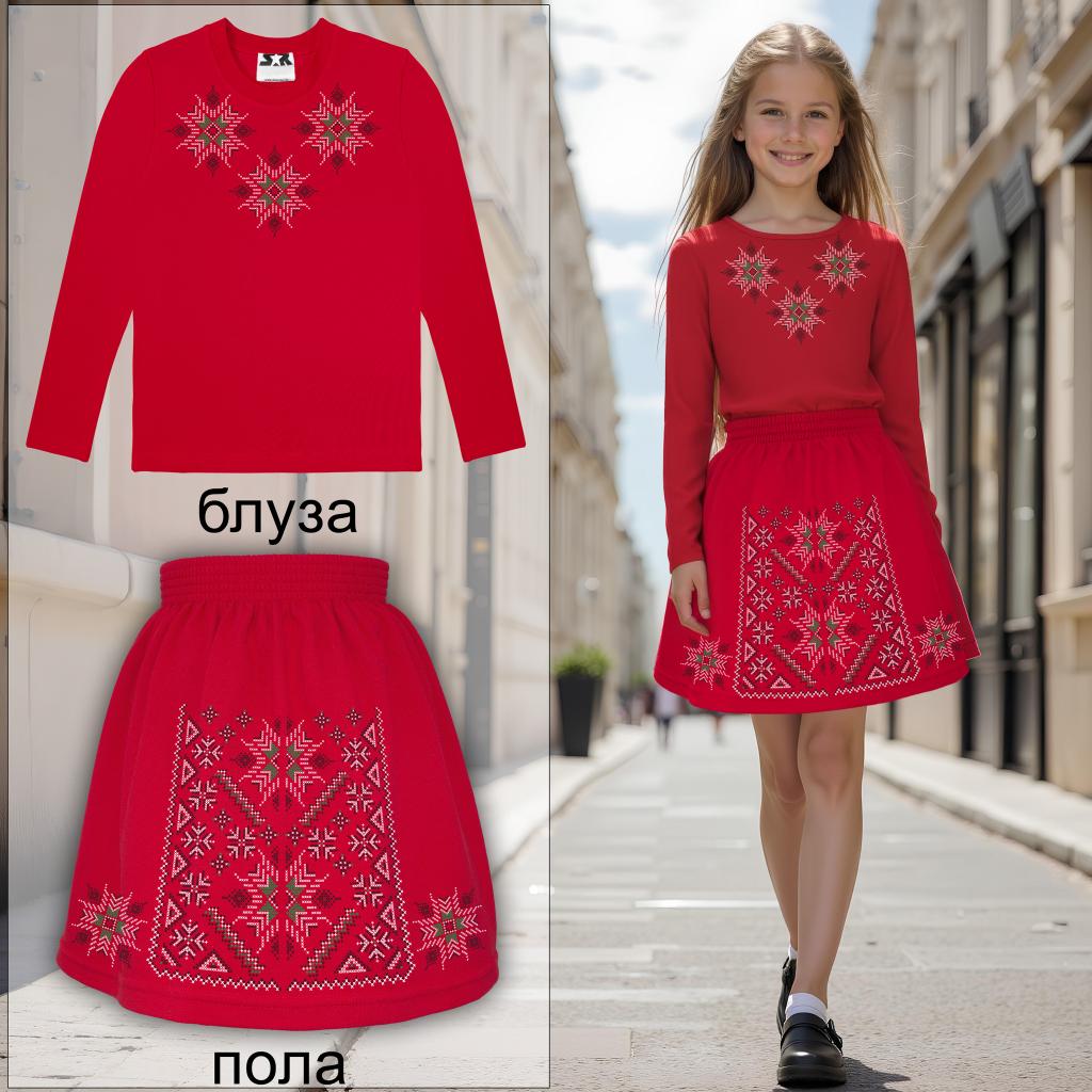 Комплект 2 части (бл./пола) в червено фолклорни мотиви