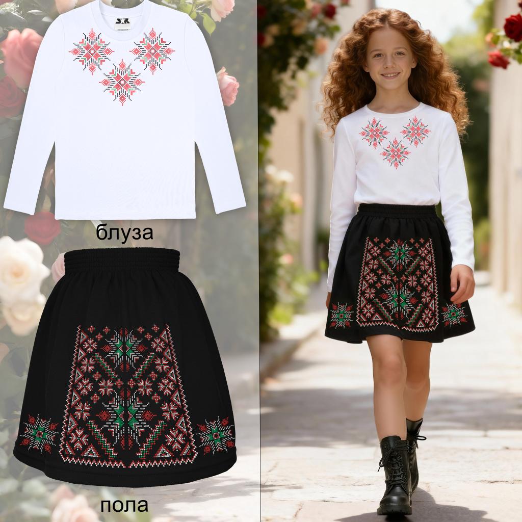 Елегантност с български дух! 🇧🇬 Този комплект съчетава традиционни шевици с класическа черна пола, която придава още по-стилен и универсален вид.