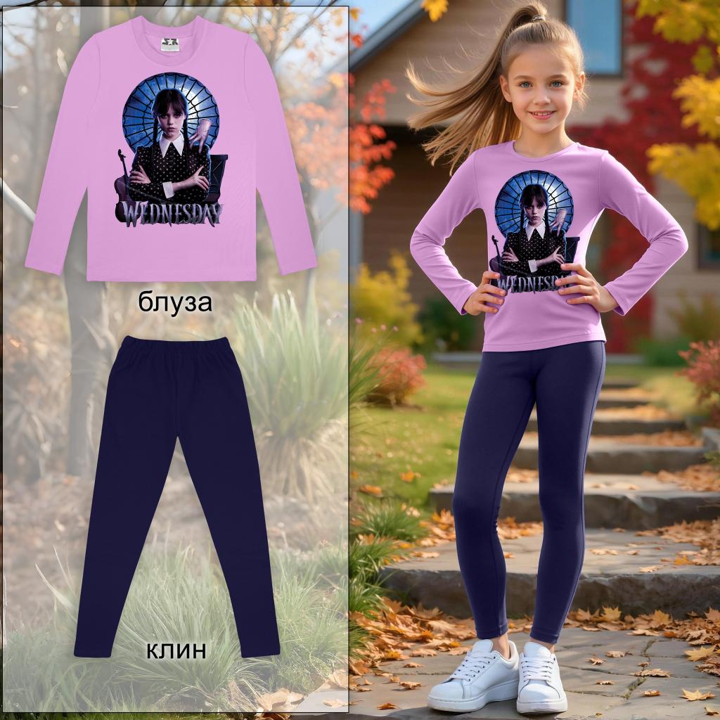 🩷 Горната част е мека памучна блуза в светлолилав или цикламов нюанс с впечатляващ DTF печат – траен, ярък и устойчив дори след многократно пране.