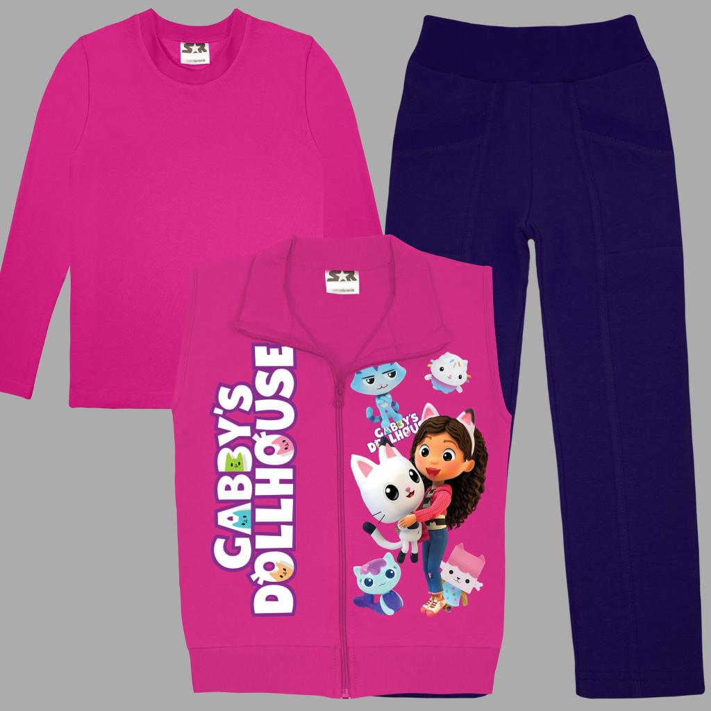 👚 Елек в цикламов цвят с ярък DTF печат на Габи и нейните котета – мек, топъл и супер удобен за училище, разходка или игра.