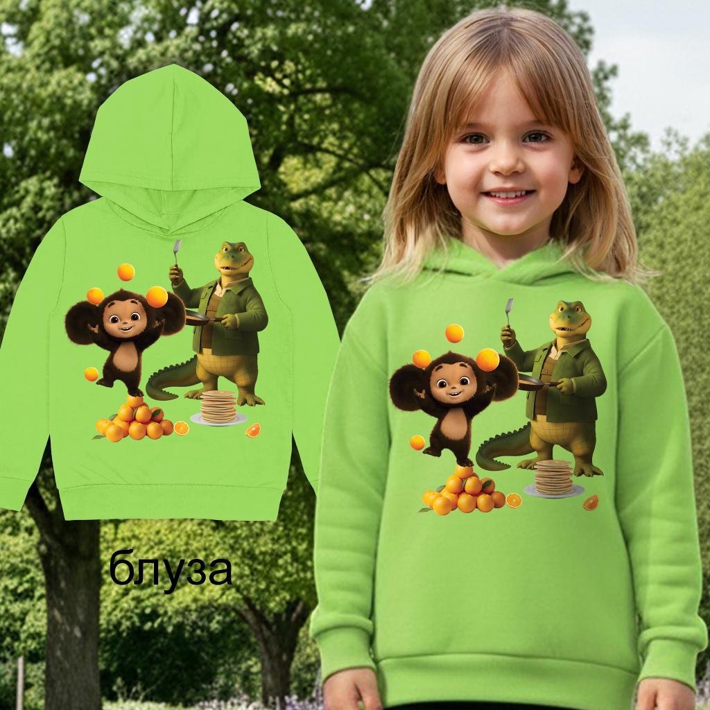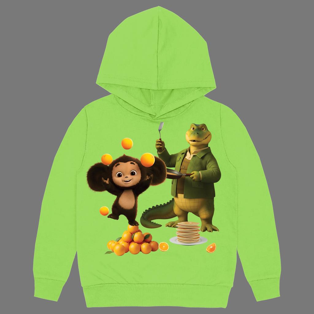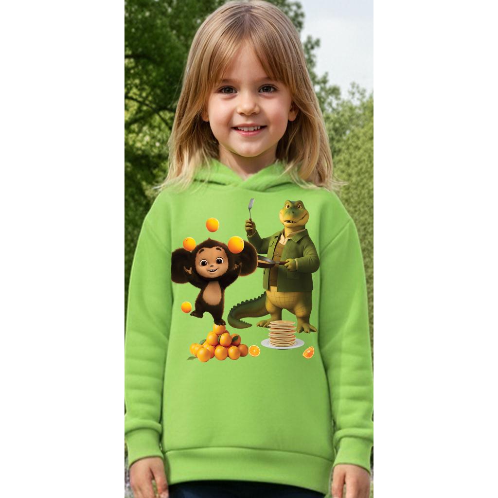 Този детски суичър в свежо резеда носи настроение и цвят, а героите Чебурашка и приятелят му Крокодил Генадий превръщат всяко обличане в приключение! 🌈