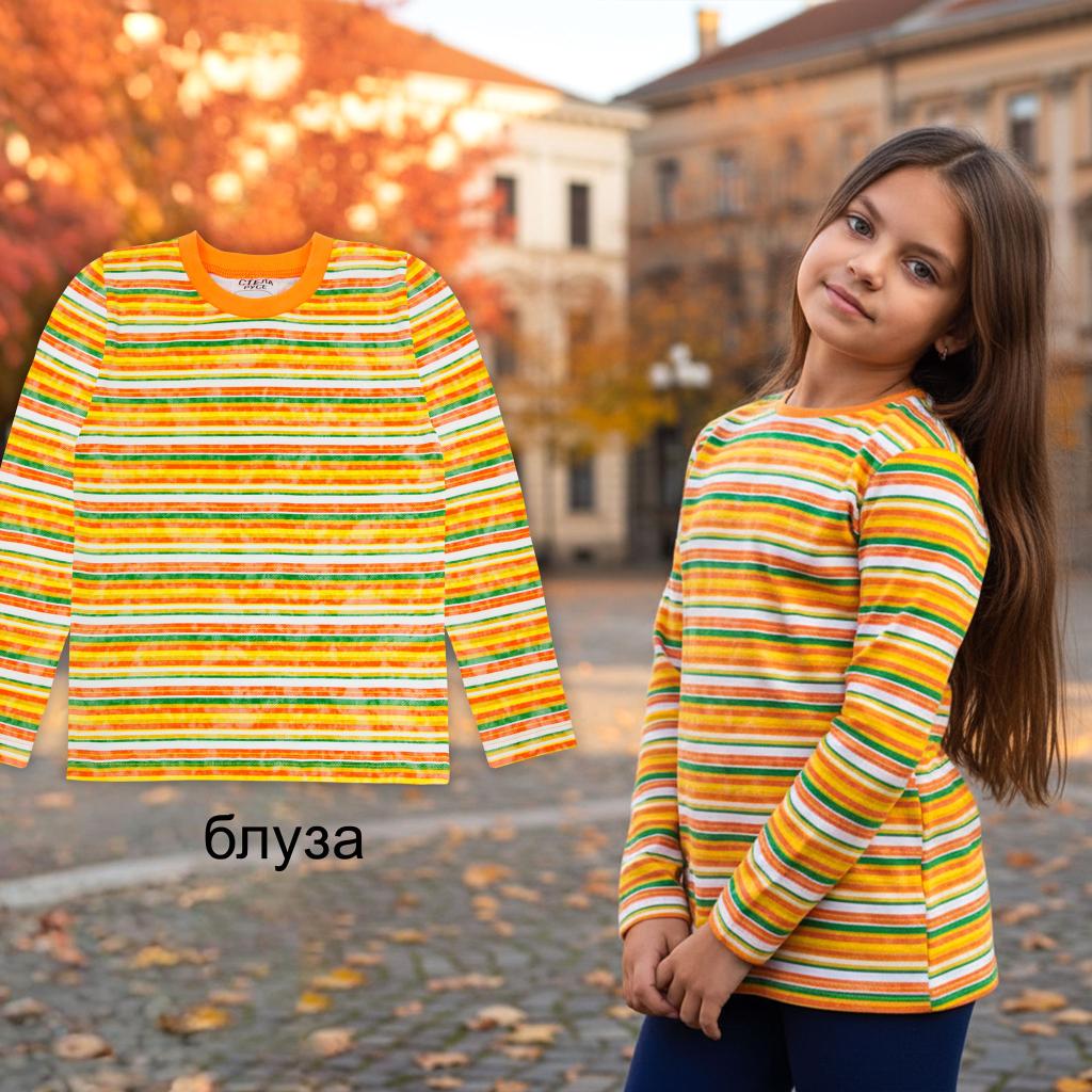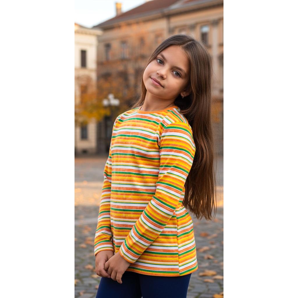 Внесете свежест и цвят в ежедневния стил с тази весела детска блуза с дълъг ръкав! Ярките райета в комбинация от оранжев, жълт, зелен и бял цвят напомнят за слънчеви дни и носят усмивка.