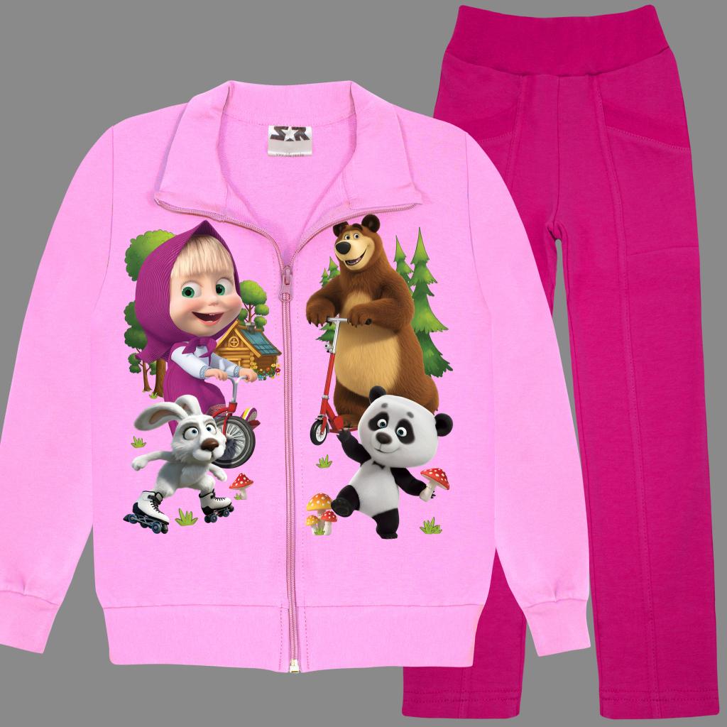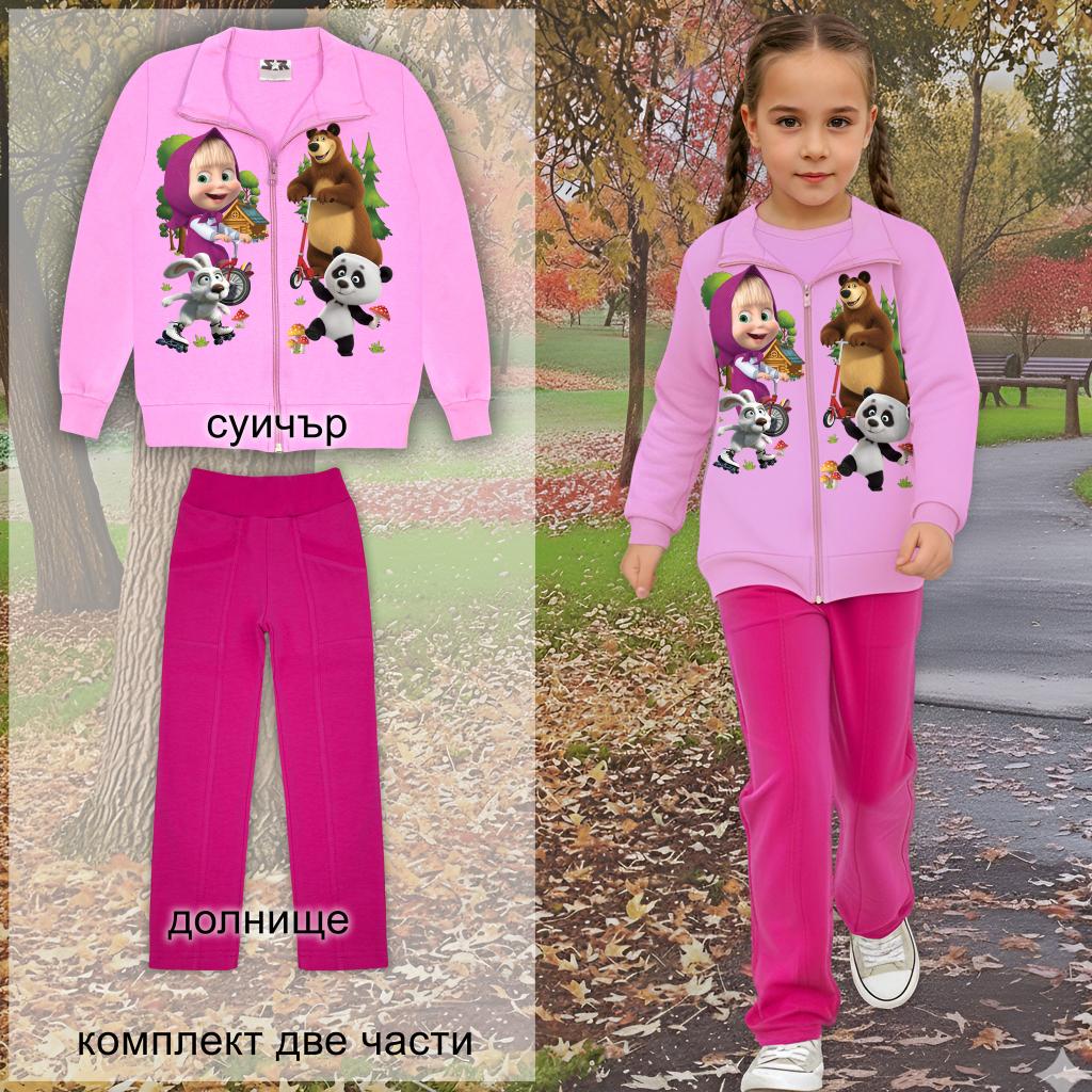 💖 Комплект “Маша в гората” – суичър и долнище в циклама за усмихнато детство! 🐻🌲