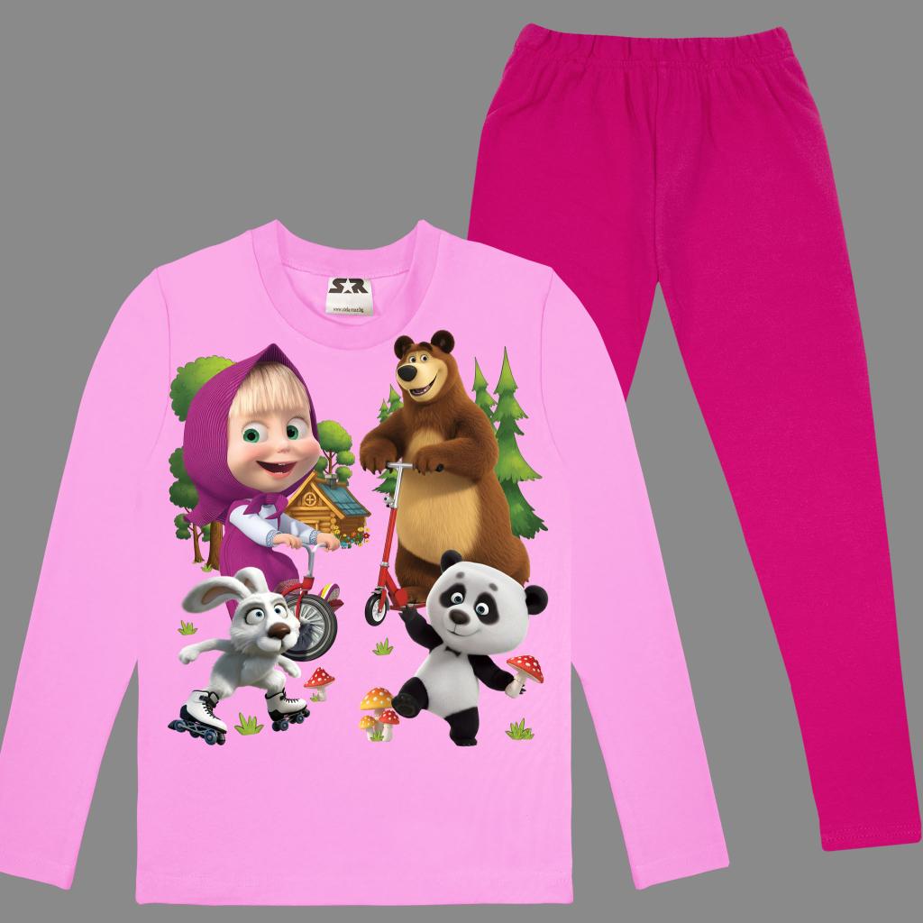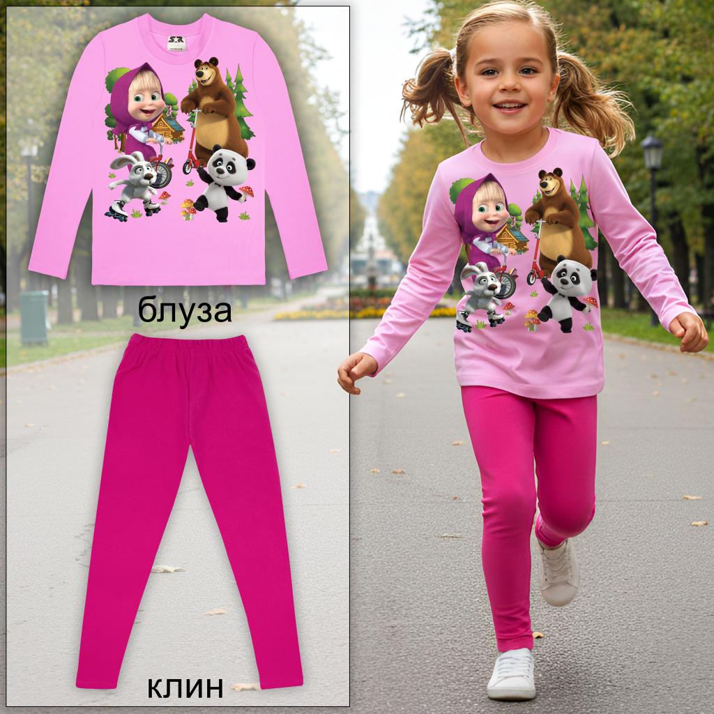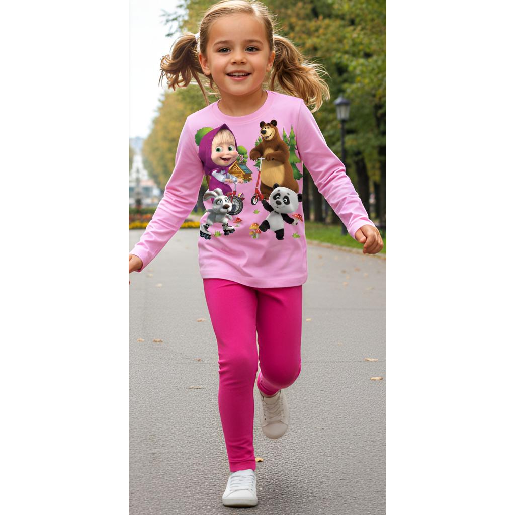Тънка розова блуза с любимата Маша, съчетана с клин в свеж цвят циклама – перфектно дуо за ежедневни приключения, училище или игри навън. 🐻✨