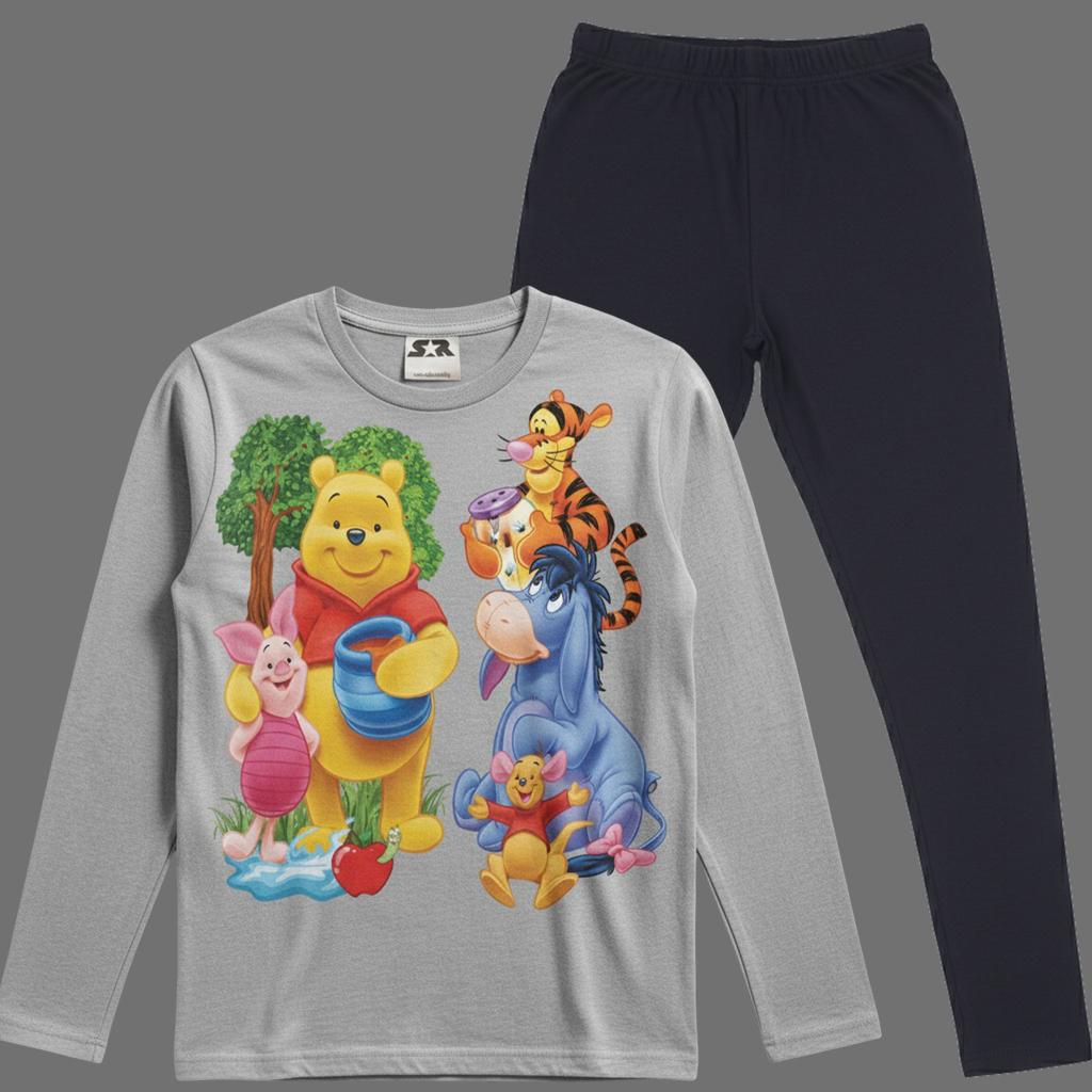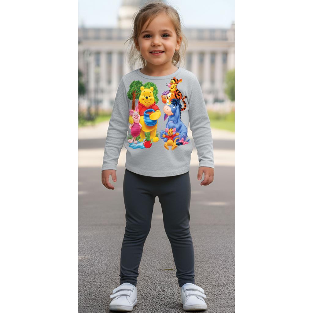 👕 Блуза с дълъг ръкав в сиво с весел и цветен принт на любимите герои – Мечо Пух, Прасчо, Тигъра и Ийори