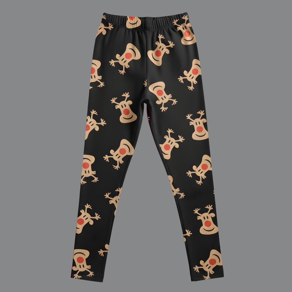 • Цвят и Принт: Наситено празнично червено с повтарящ се принт на усмихнати еленчета в златисто-жълто с червен нос, заобиколени от бели снежинки.