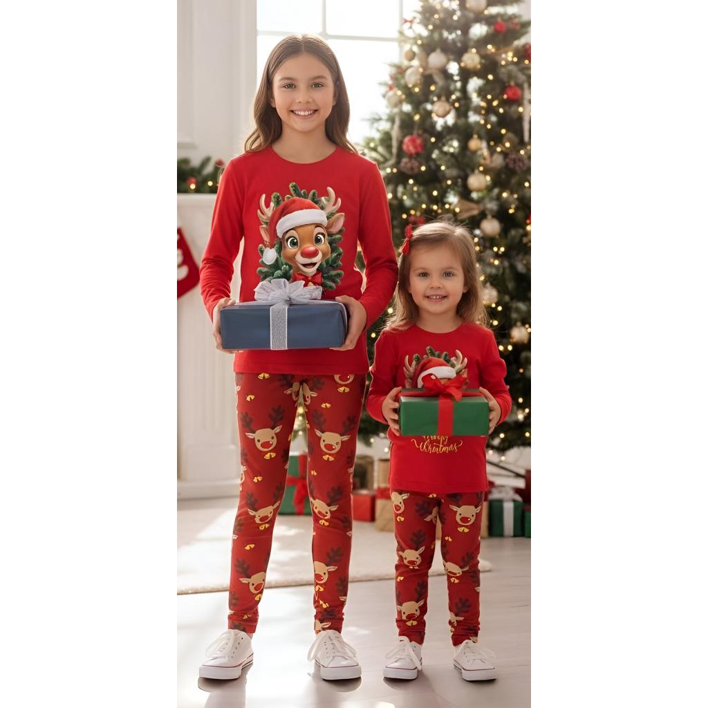 Внесете класически коледен чар и невероятен уют в гардероба на вашето дете! Този комплект е перфектната комбинация от ярки цветове и празнични мотиви – идеален за коледното утро, семейни снимки или като най-уютната пижама за празниците.