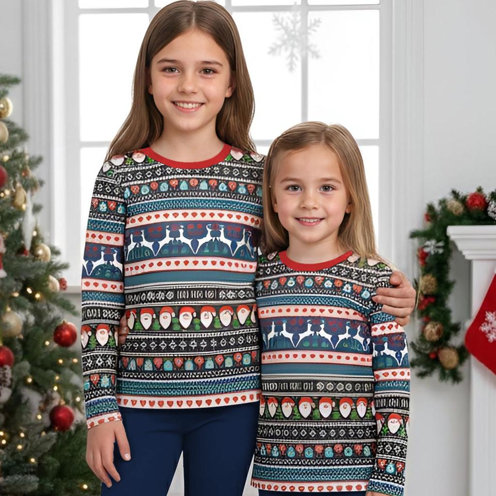 Внесете класически коледен чар и традиционен уют в зимния гардероб на вашето дете! Тази блуза с дълъг ръкав, имитираща плетена шарка, е идеална за създаване на весело настроение – перфектна за училищни тържества, семейни събирания или като стилен ежедневен акцент.