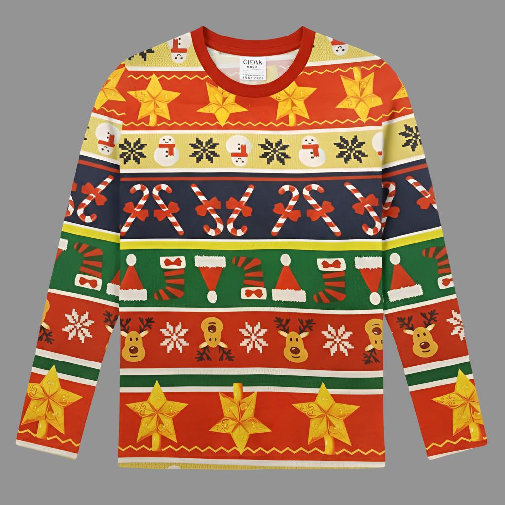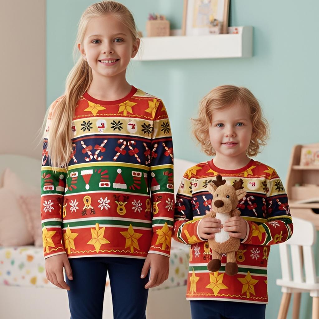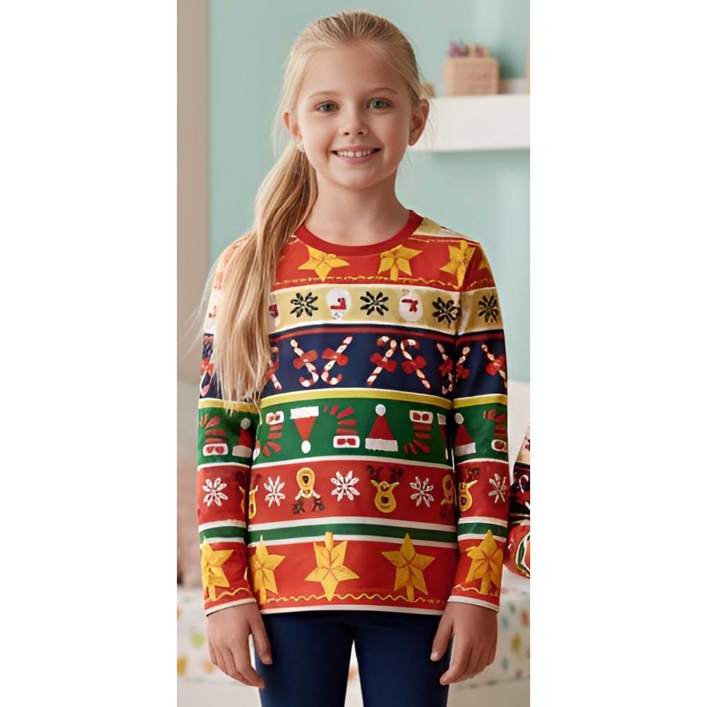 Внесете максимално празнично настроение и богатство от цветове в зимния гардероб на вашето дете! Тази блуза с дълъг ръкав, имитираща плетена шарка, е идеална за създаване на весело настроение – перфектна за училищни тържества, коледни събития или стилен ежедневен акцент.