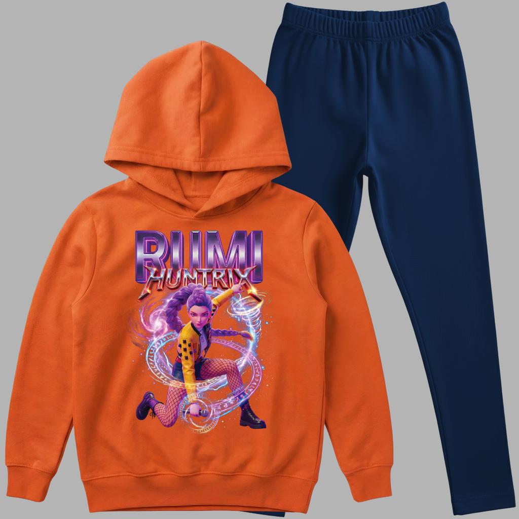 🧡 Суитшърт с качулка е не просто топъл, а експлозия от енергия! Яркият принт на Rumi, заобиколена от мистични светкавици и звезден прах, гарантира, че погледите ще бъдат насочени само към вашия малък герой. Надписът "RUMI HUNTRIX" свети със сила, готова за всяка мисия! Изработен от мека материя, която дава свобода на движение за скокове, тичане и всички междугалактически приключения.