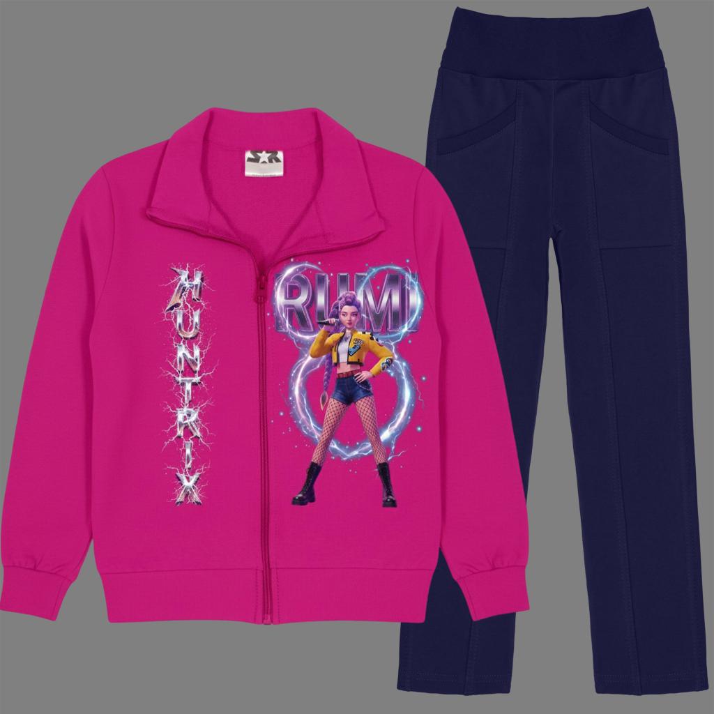 Мощна Визия: Суитшъртът с обло деколте в зашеметяващ цвят циклама (ярко розово) е мек и идеален за всеки ден. Принтът на целия HUNTRIX SQUAD е послание за приятелство и сила, като внася динамичен, вдъхновен от K-pop стил във всяка визия.