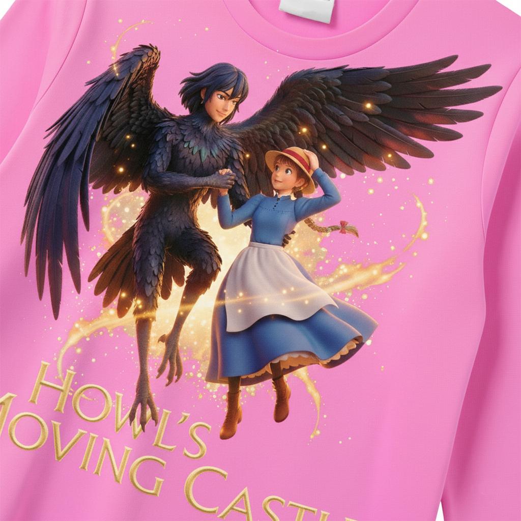 Тази розова блуза със сцената от „Howl’s Moving Castle“ е създадена, за да грабва погледи и да разпалва въображението.