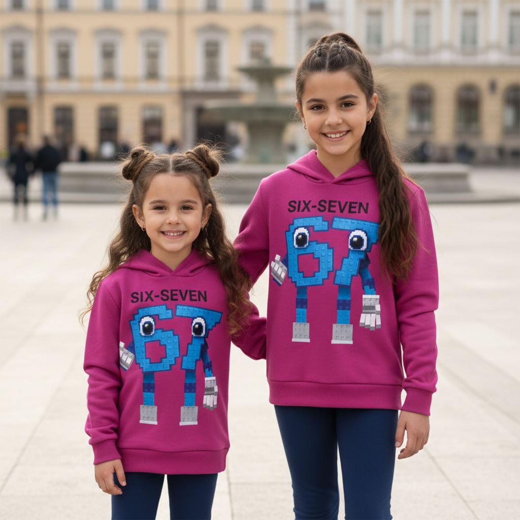 Весела светлосиня блуза с любимия герой Six-Seven, създадена да носи усмивки и настроение всеки ден. Идеална за игра, училище и разходки – удобна, практична и грабваща вниманието още от пръв поглед.