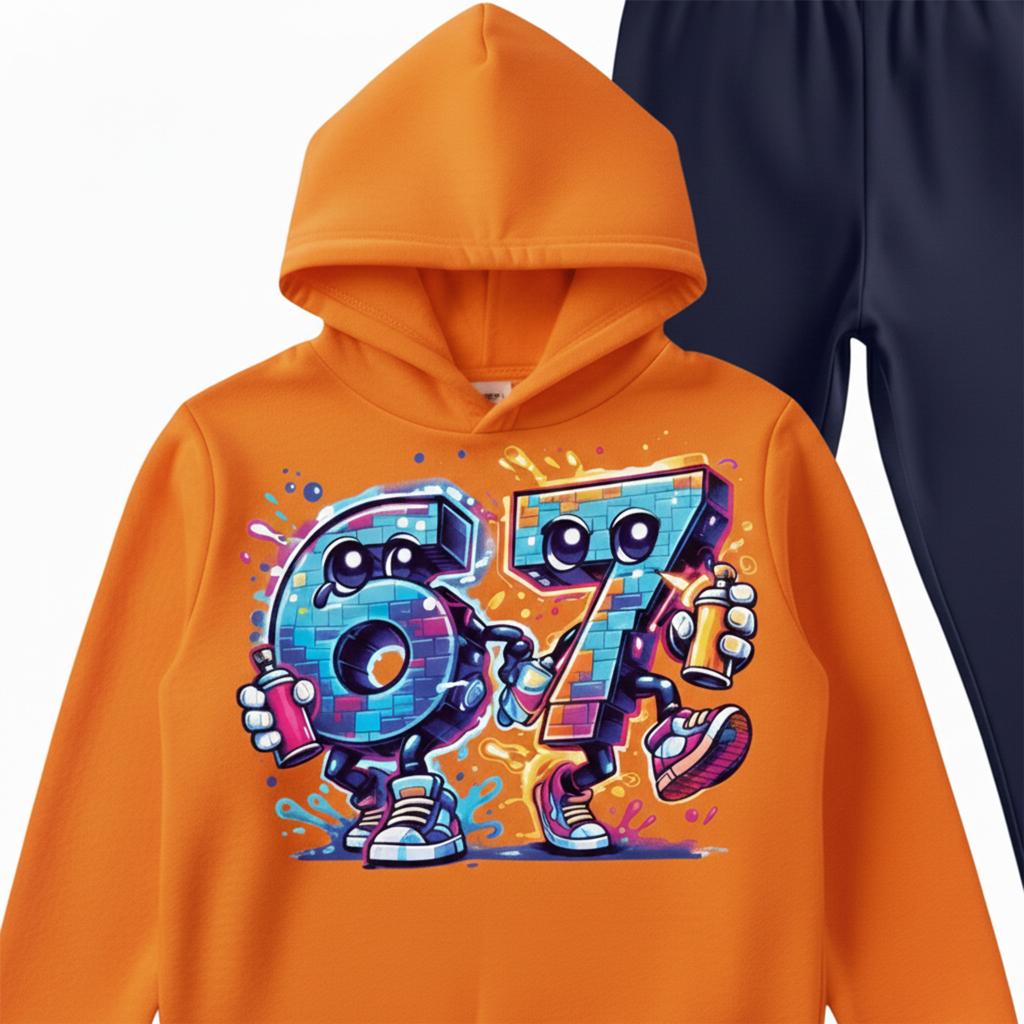 Търсиш перфектния аутфит, който съчетава смел дизайн и пълна свобода на движение? Нашият нов сет събира експлозивното оранжево на суичъра Graffiti Energy и изчистената линия на тъмен премиум клин. Резултатът? Визия, която крещи „стил“ и се усеща като „втора кожа“.