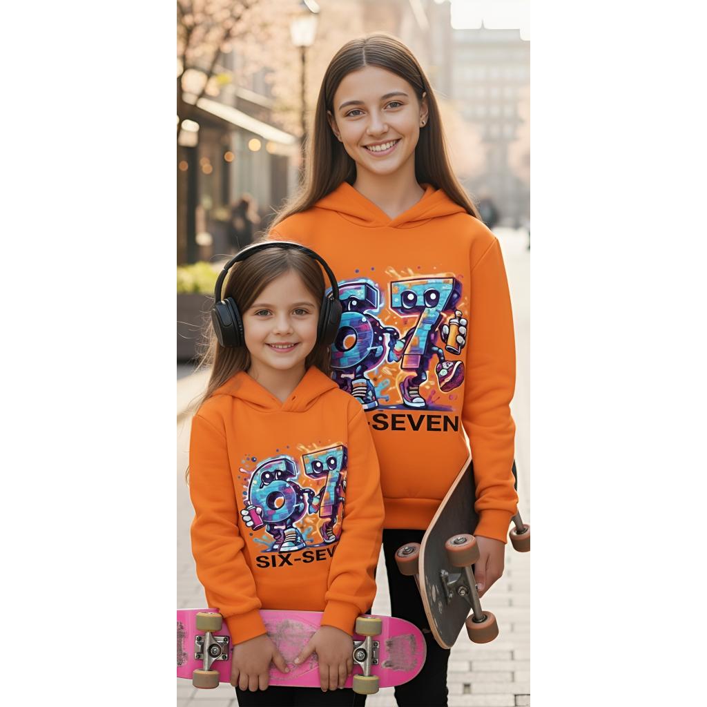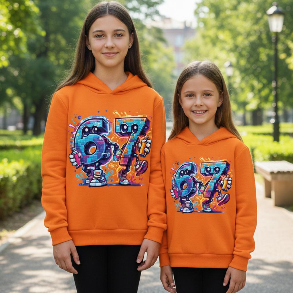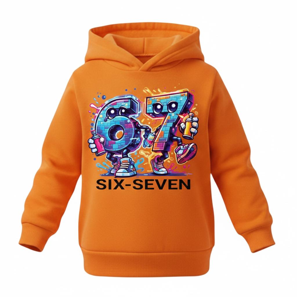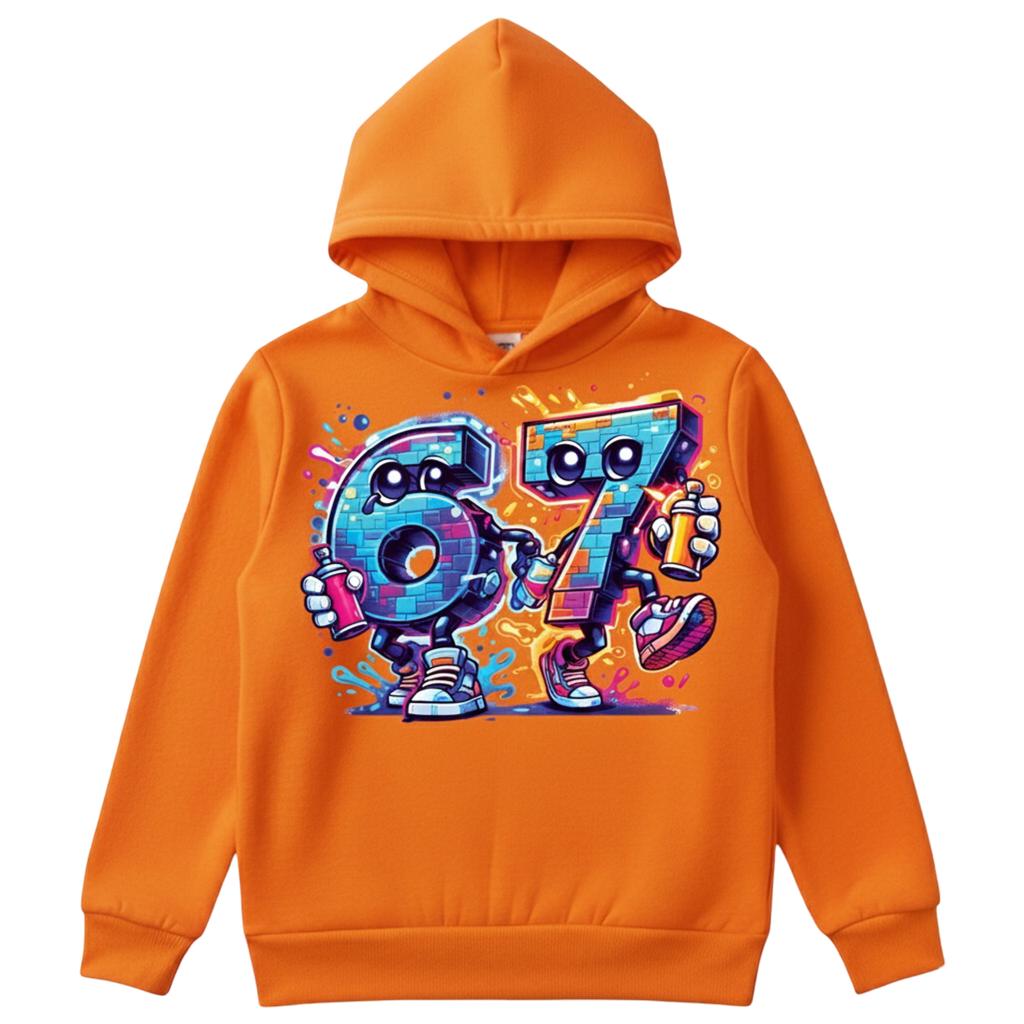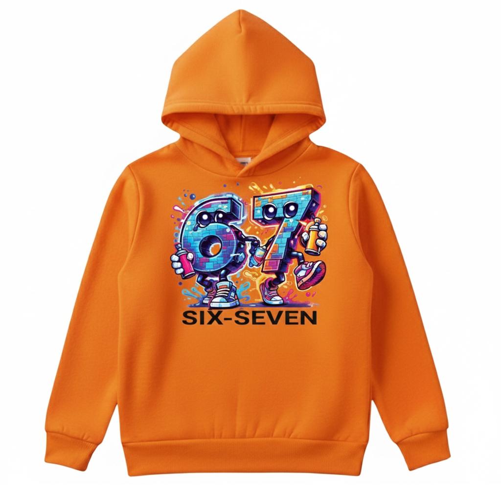 Готов ли си да изпъкнеш? Този суичър не е просто дреха, а преносимо произведение на изкуството. С яркия си оранжев цвят и уникалните 3D графити герои, SIX SEVEN Graffiti Edition е създаден за тези, които не се страхуват да бъдат забелязани и обичат градския вайб.