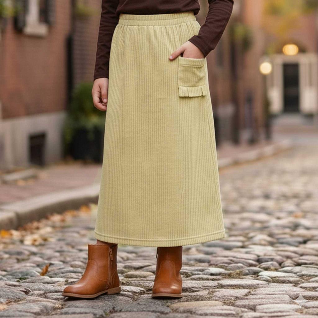 Изработена от мека, релефна материя с ластична талия, тя осигурява свобода на движение и комфорт през целия ден – идеална за разходки, училище, празници и специални поводи. 🍂👢