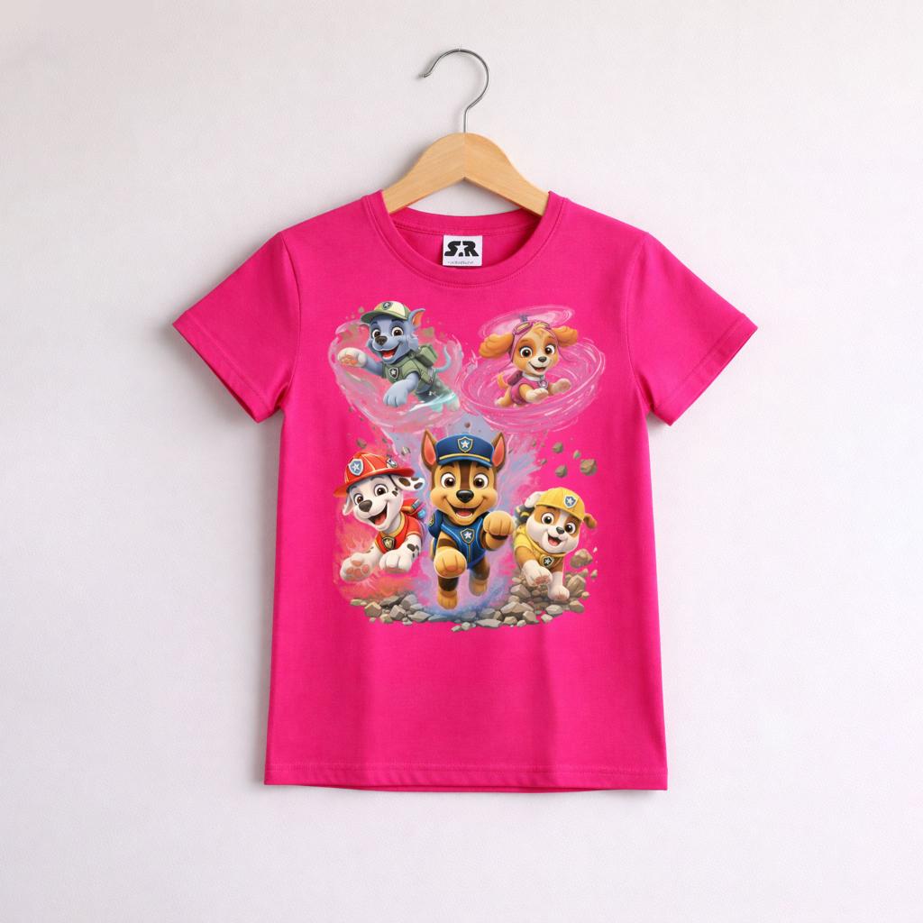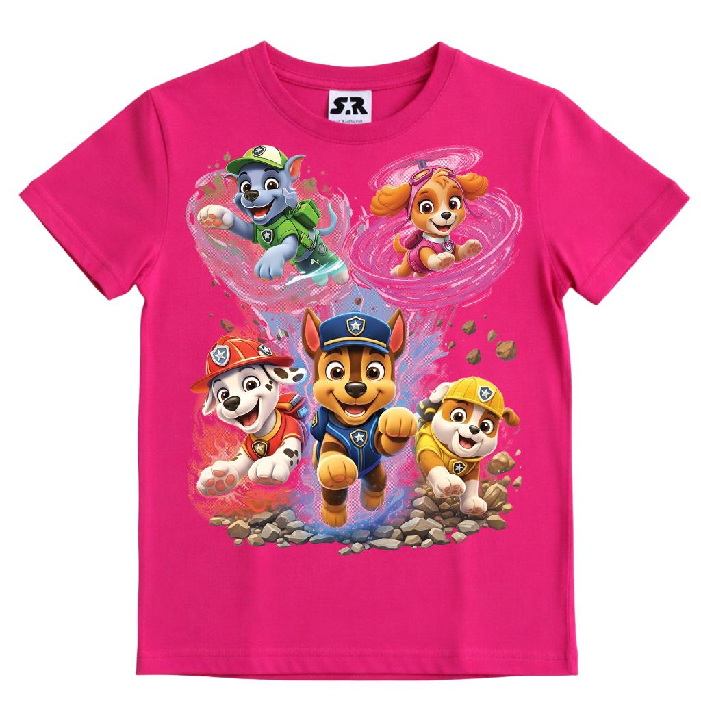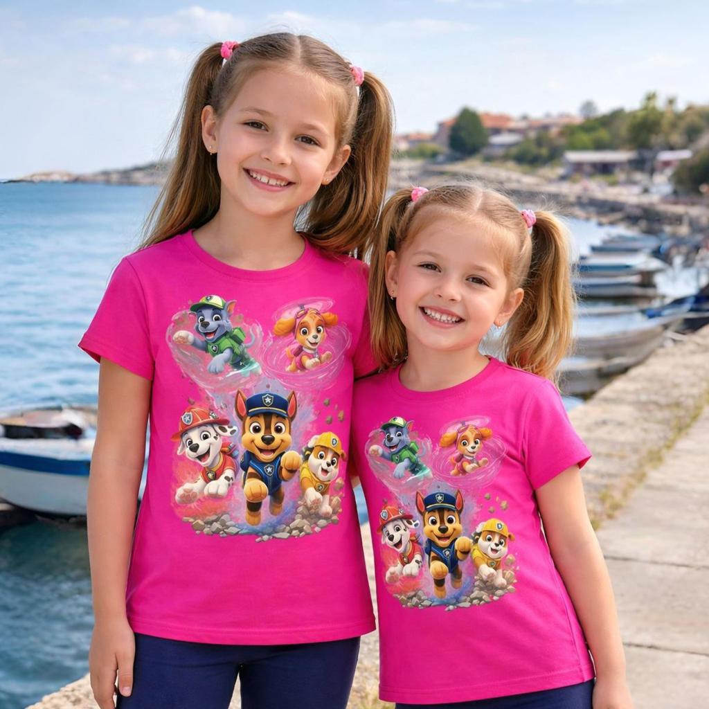 💖🐾 Цикламена детска тениска „Веселите кученца“ – цвят, настроение и приключения! 🐾💖