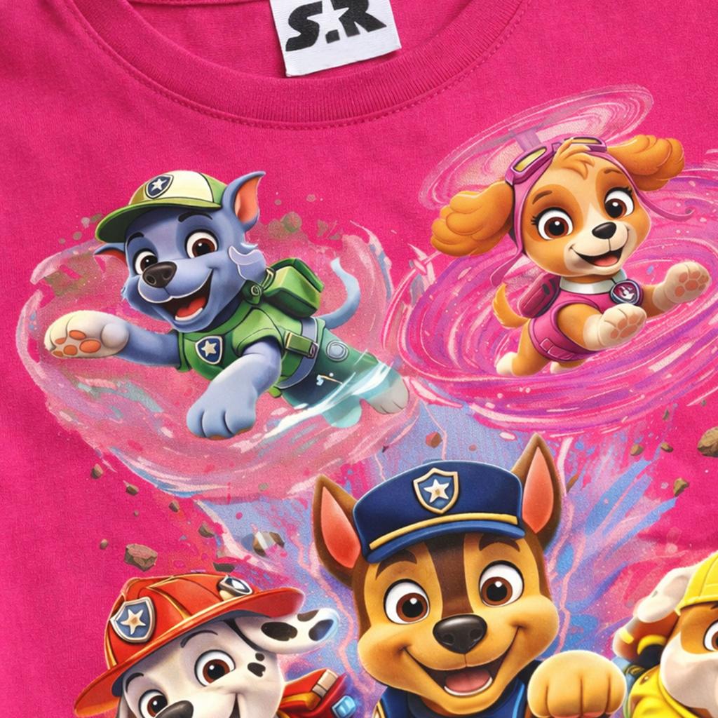 Тази ярка цикламена тениска буквално оживява с цветната щампа на смелите и весели кученца, които се впускат в нови приключения! 🌪️✨ Динамичният дизайн, експлозията от цветове и усмихнатите герои превръщат тениската в любимата дреха на всяко дете.