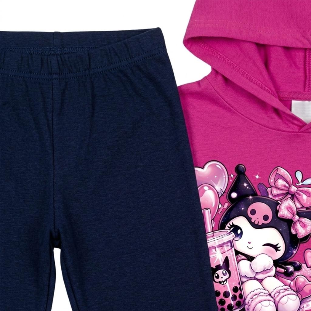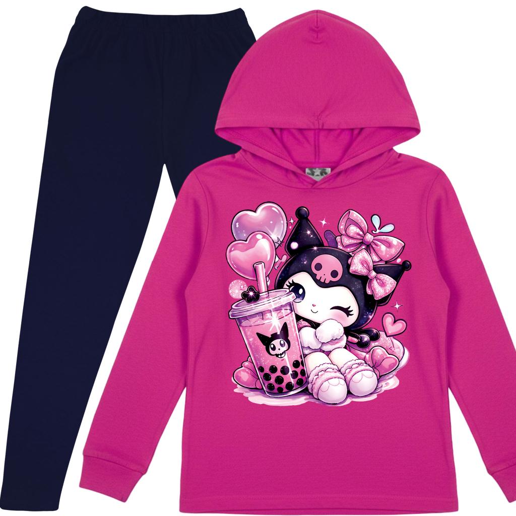 🎀💗 Детски комплект Kuromi – блуза с качулка + тъмен клин
