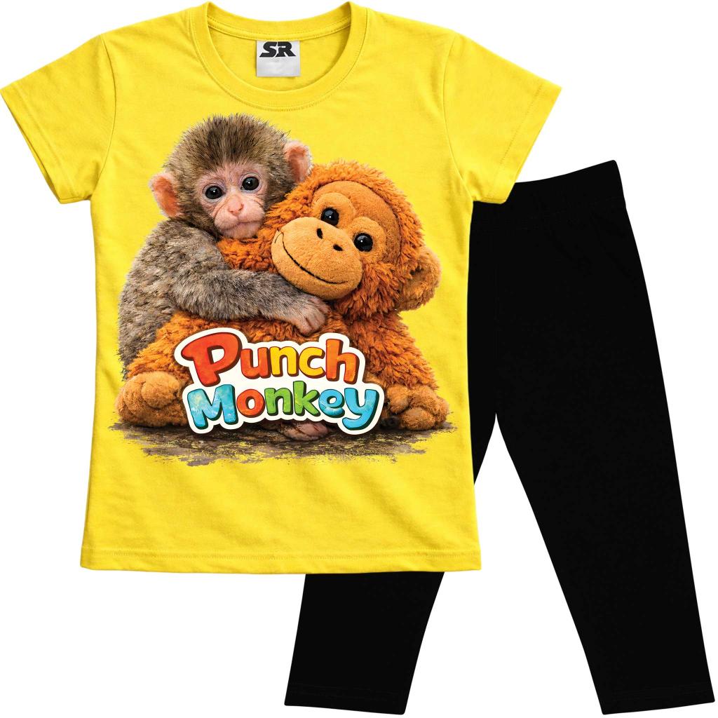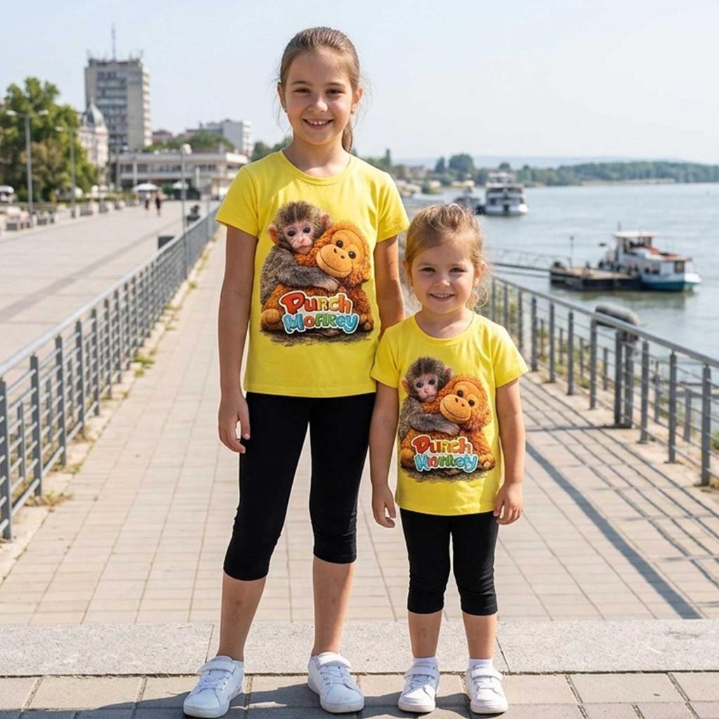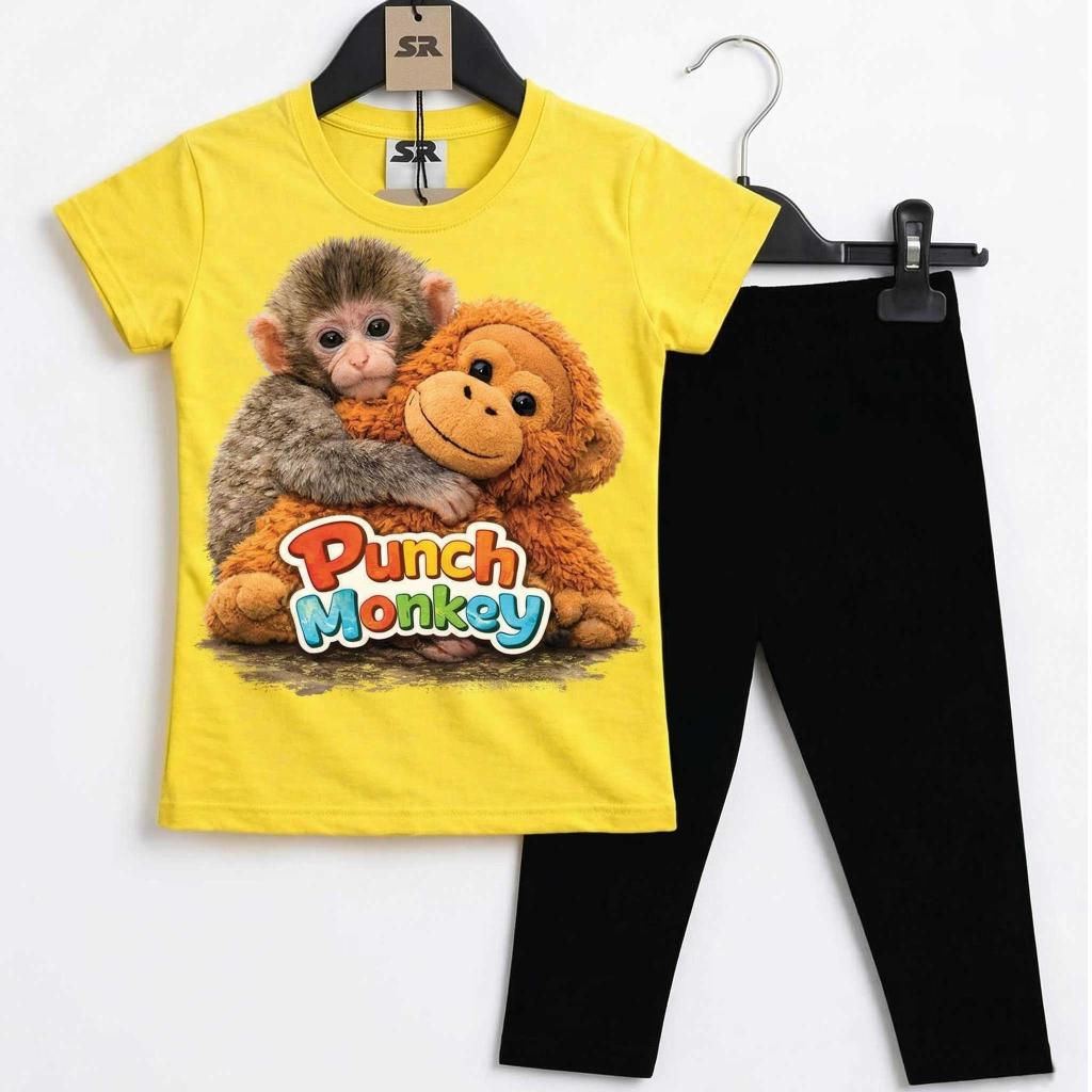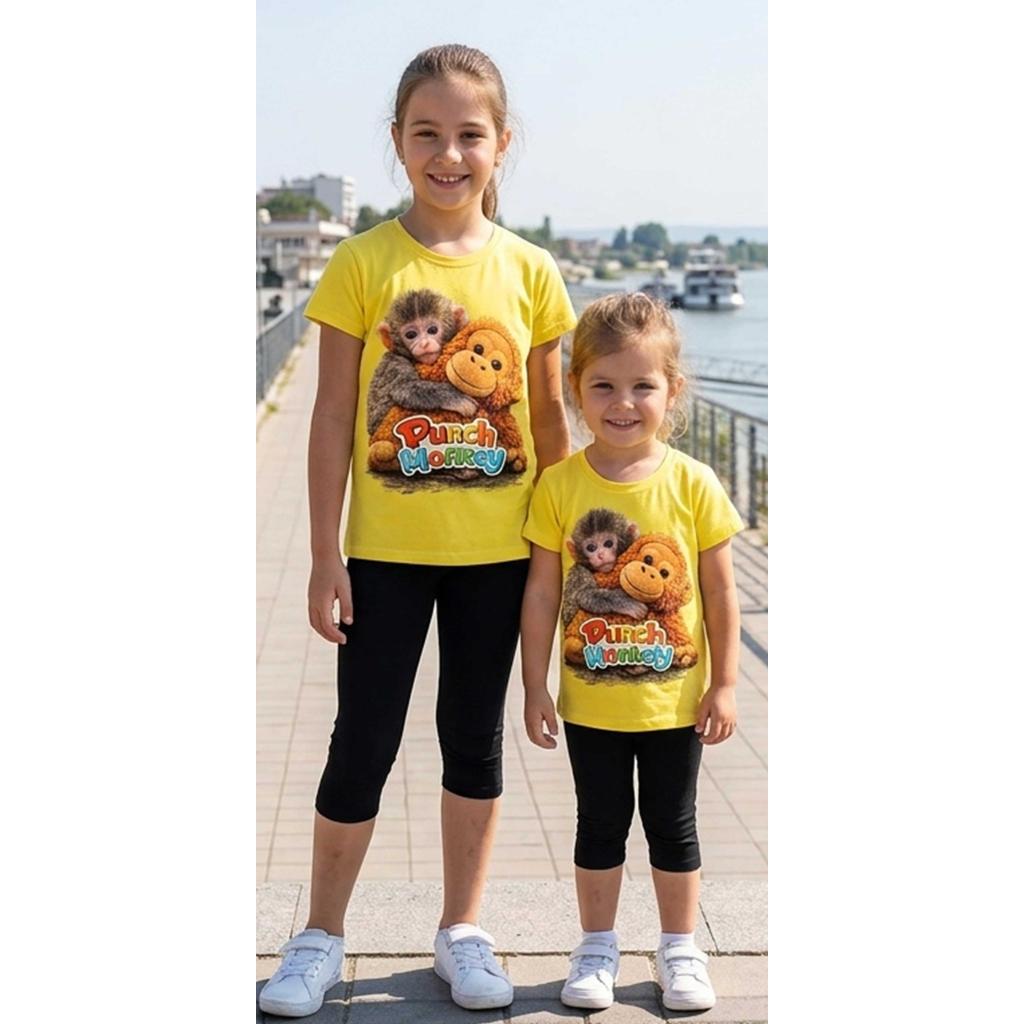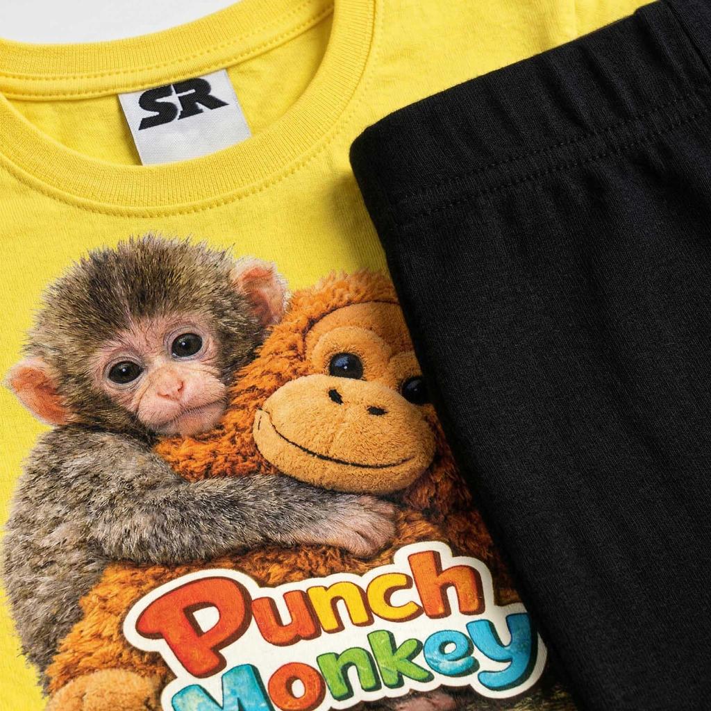 🐒💛 Детски комплект „Маймунката Пънч“ – тениска и тъмен клин под коляното