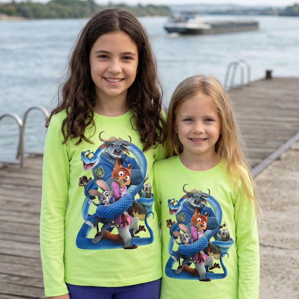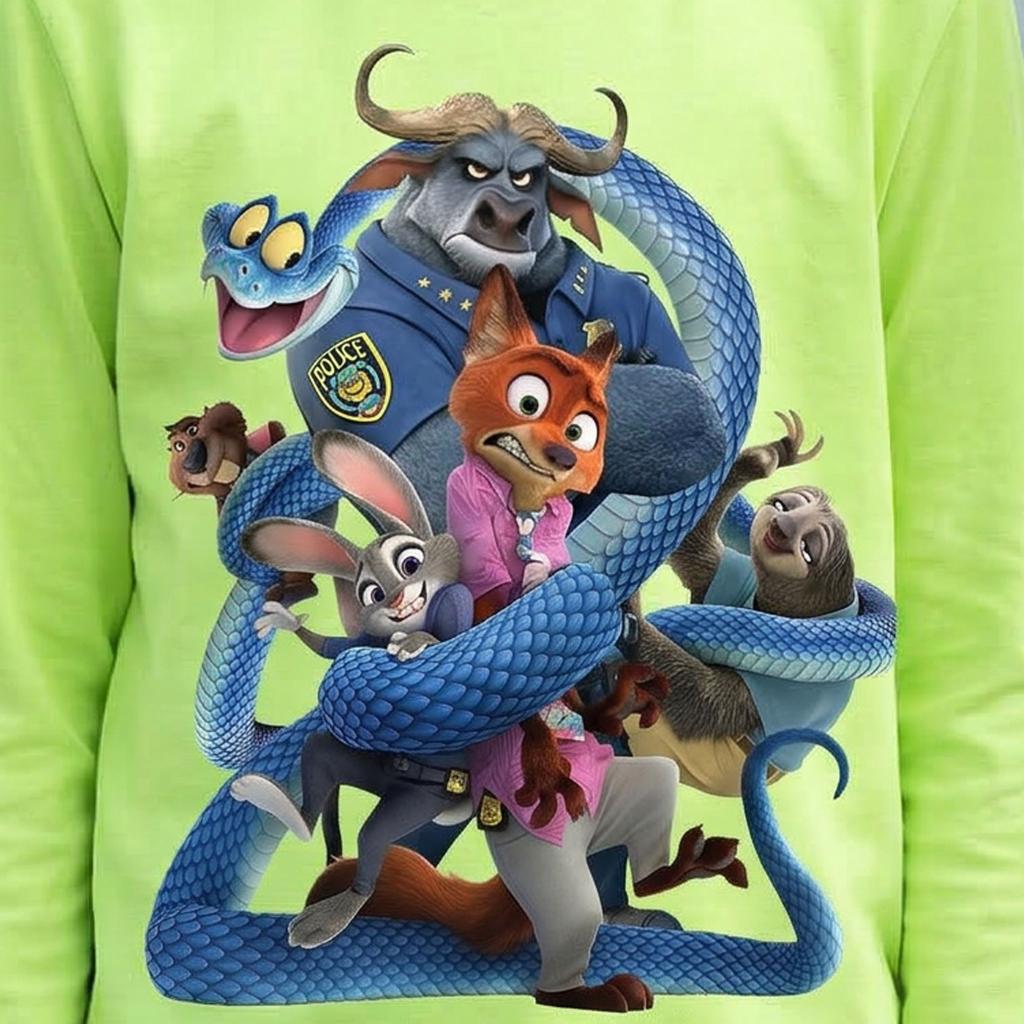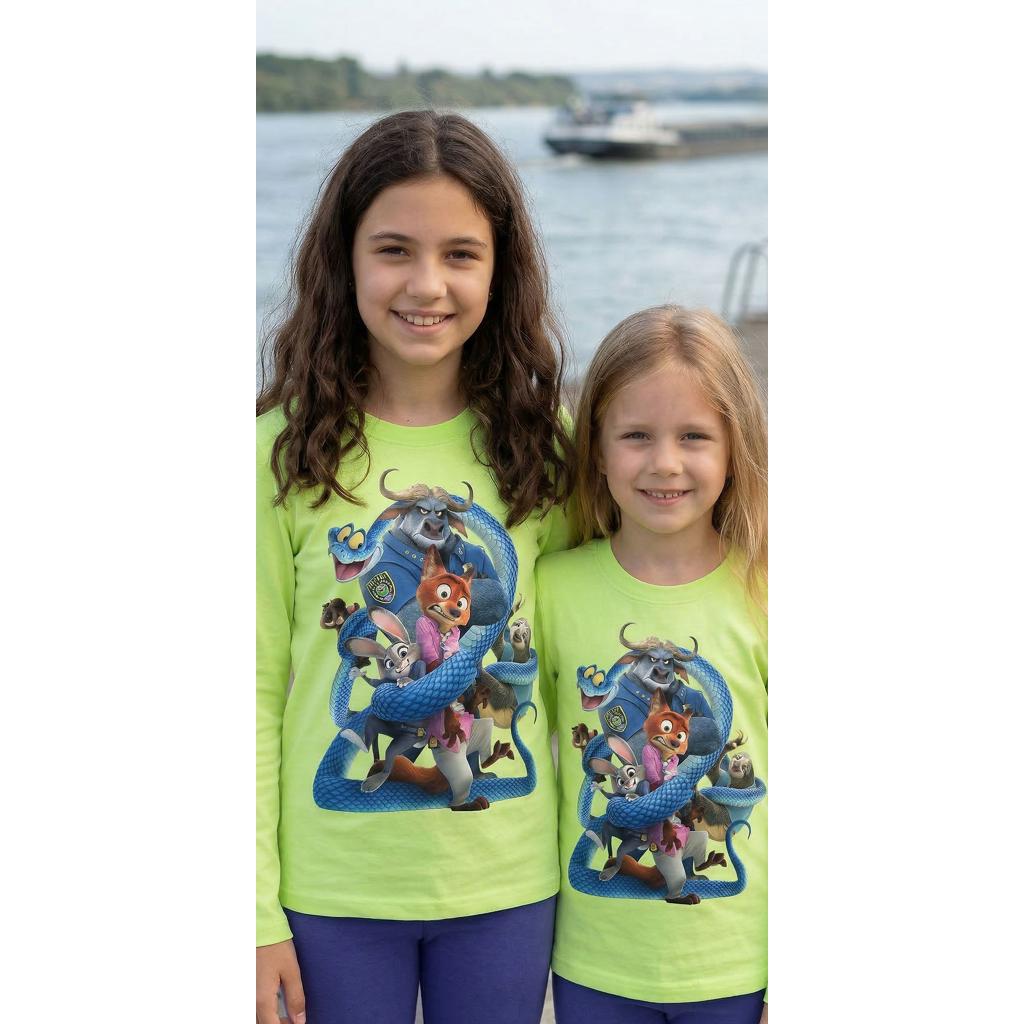 🦊🐰 Детска блуза „Zootopia приключение“ – зелена блуза с любимите герои