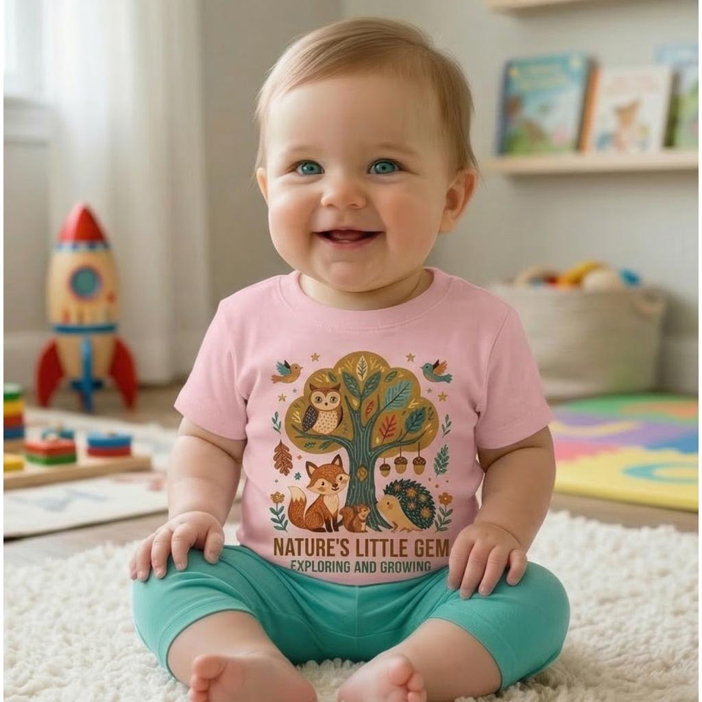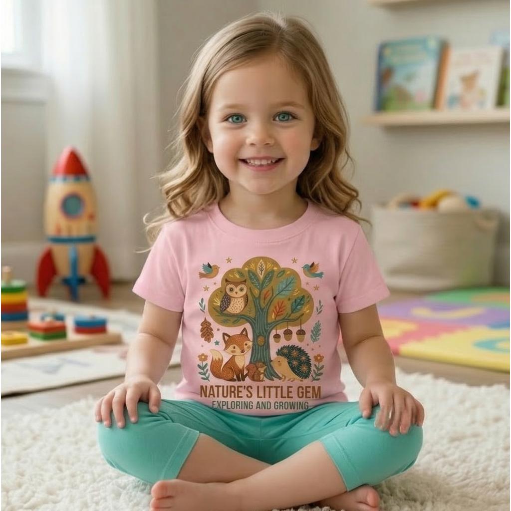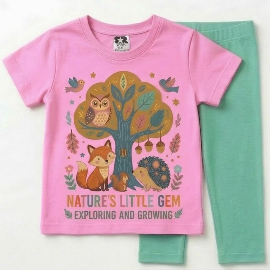 👕 Тениска в нежно розово с красива горска илюстрация – сладка лисичка, бухалче, таралежче и малко катериче, събрани около вълшебно дърво. Дизайнът е създаден с висококачествен DTF печат, който запазва цветовете ярки и наситени дори след многократно пране.