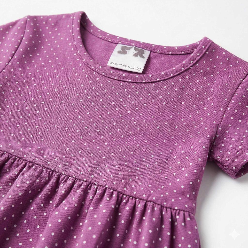 👗 Виолетова рокля с бели точки – свежа, нежна и винаги актуална. Класическият десен придава игривост, а разкроената кройка от талията надолу създава красива и ефирна визия при всяко движение.