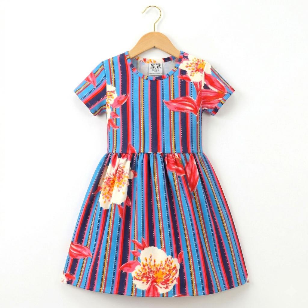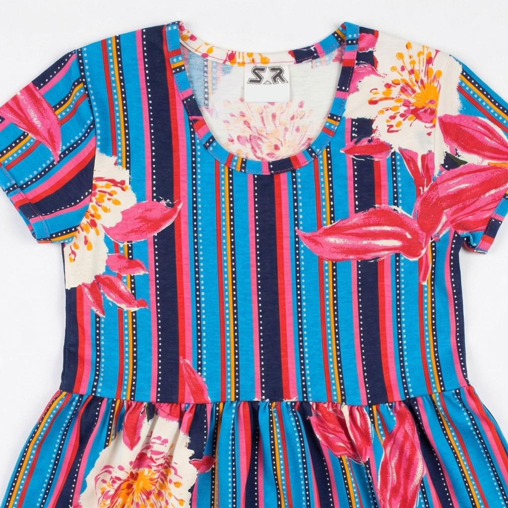 👗 Рокля с райе и цветя – модерна комбинация от свежи цветове и красиви флорални мотиви. Вертикалните райета издължават силуета, а големите цветя придават артистичен и игрив акцент. Разкроената кройка от талията надолу създава лекота и ефир при всяко движение.