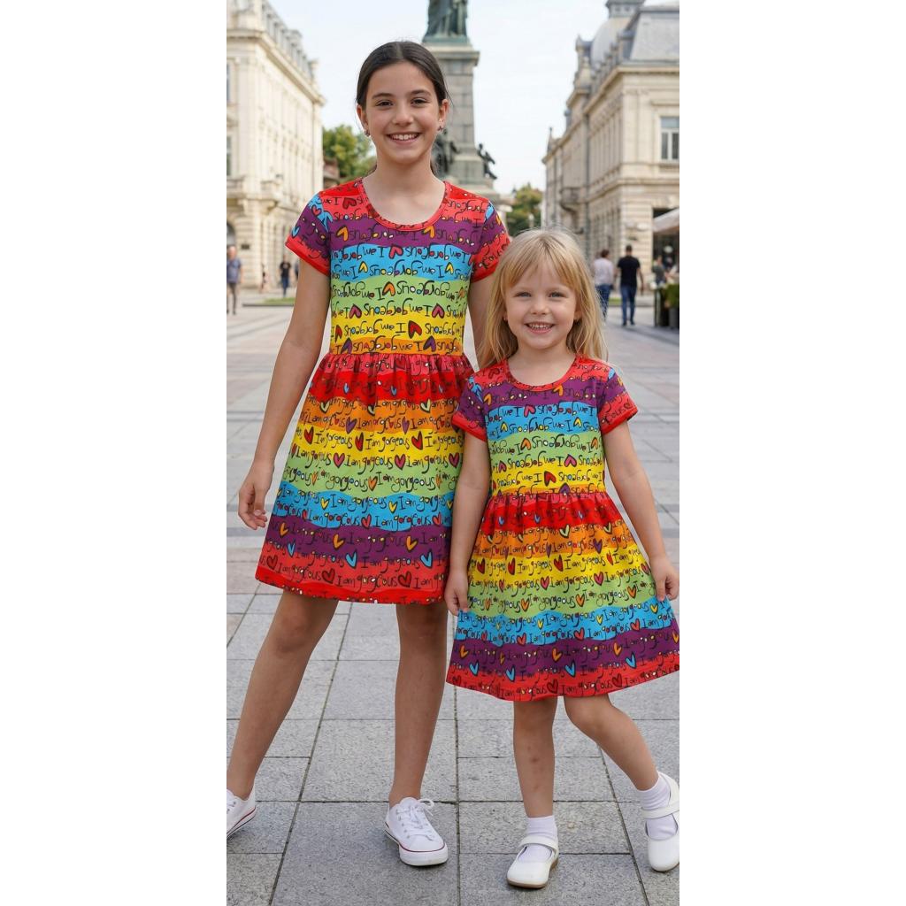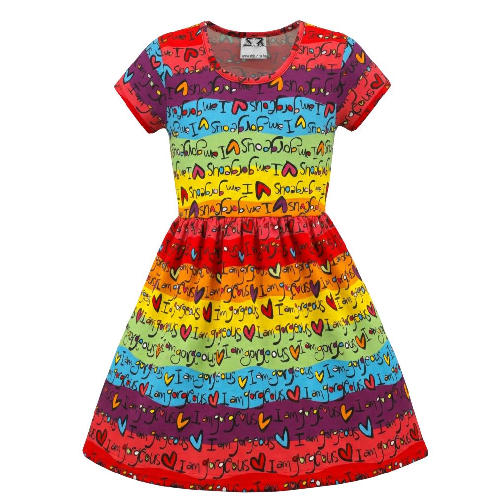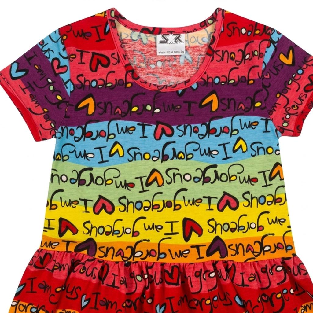 Детска рокля с цветни райета и надпис I am gorgeous