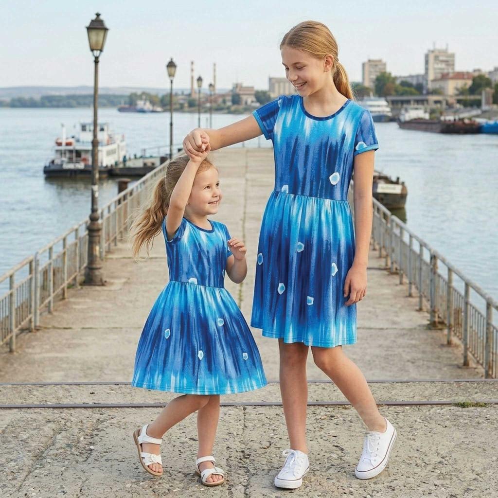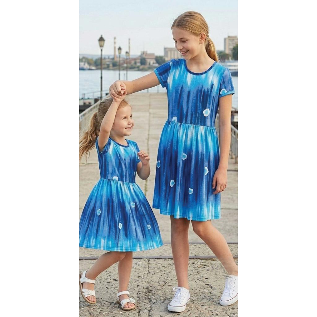 👗 Синя рокля с ефектен десен – модерна визия с преливащи нюанси на синьото, които създават усещане за движение и лекота. Малките акценти допълват дизайна и придават уникален характер на всяка рокля. Разкроената кройка от талията надолу осигурява удобство и красив силует.