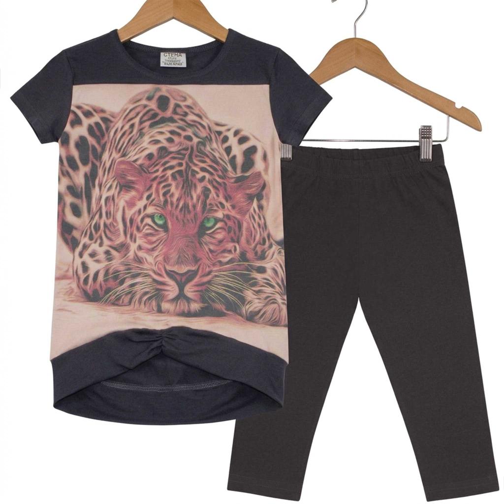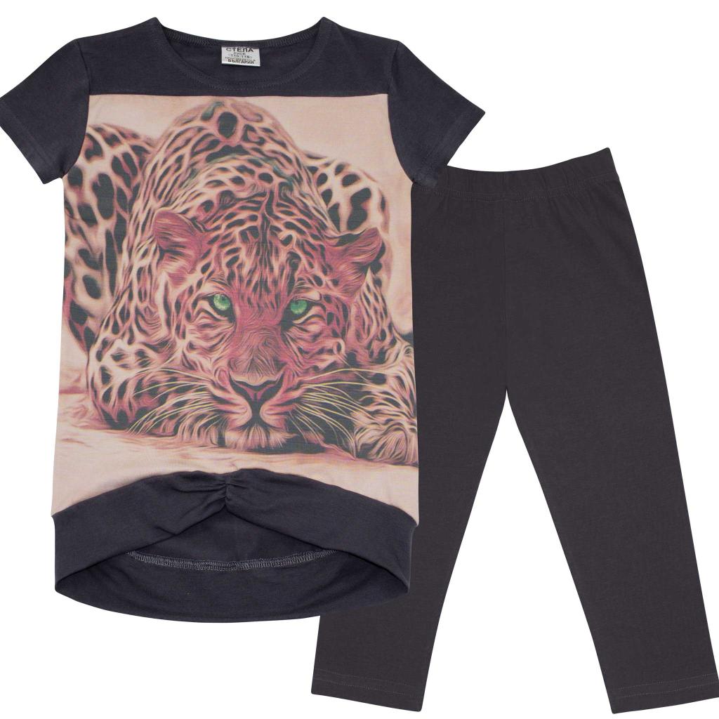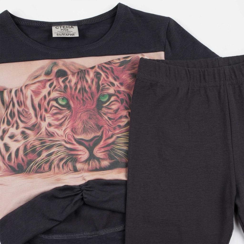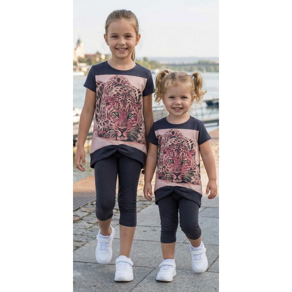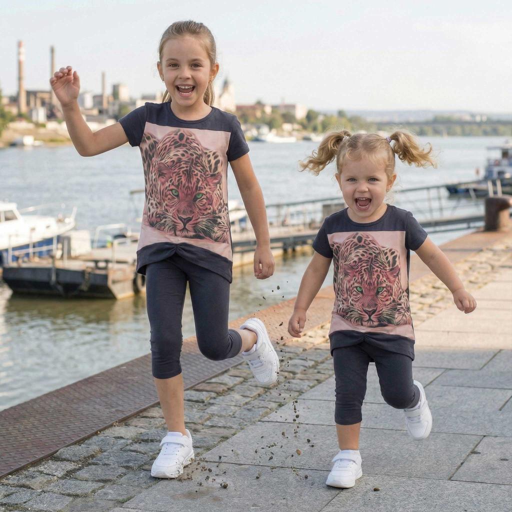👕 Туника с ефектен DTF печат + клин – модерна визия с впечатляващо изображение на леопард, което придава сила и стил. Туниката е с интересен завършек отпред, който добавя оригиналност, а клинът в класически тъмен цвят допълва перфектно визията.