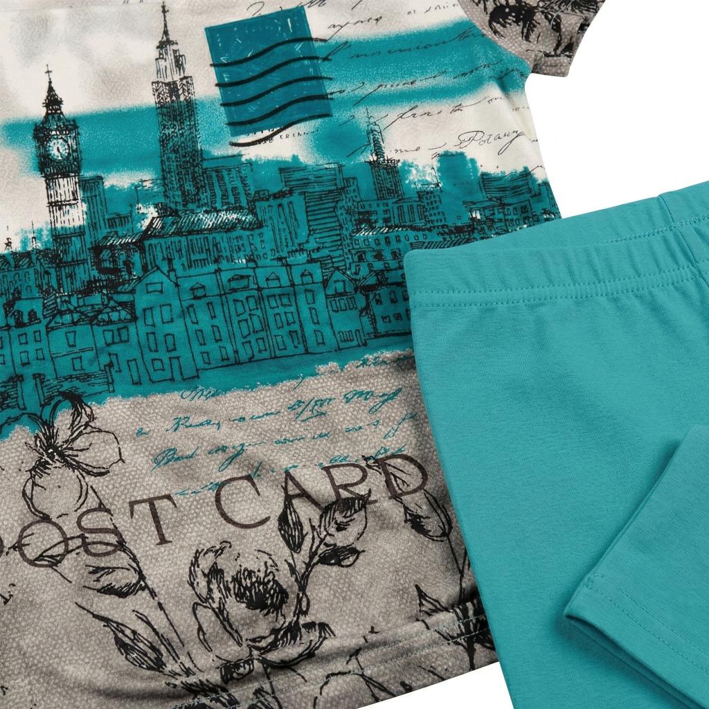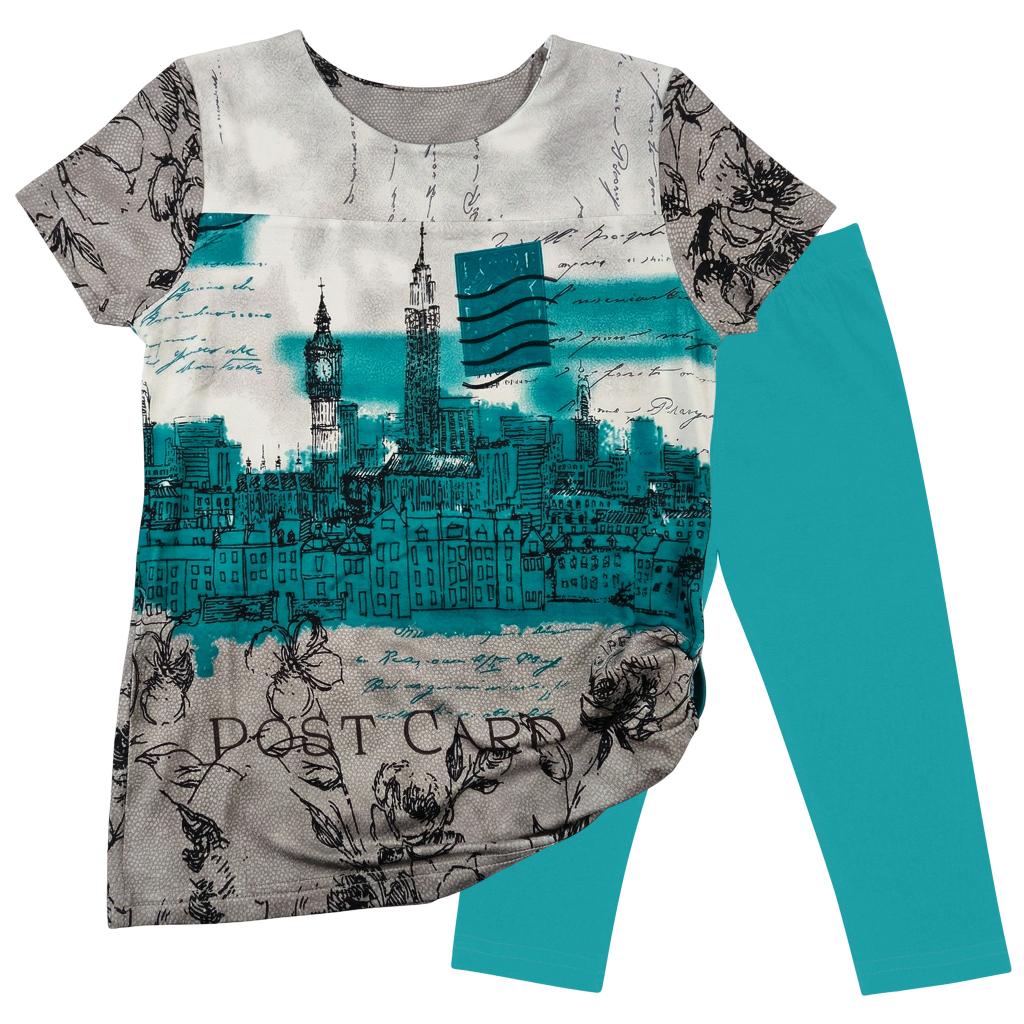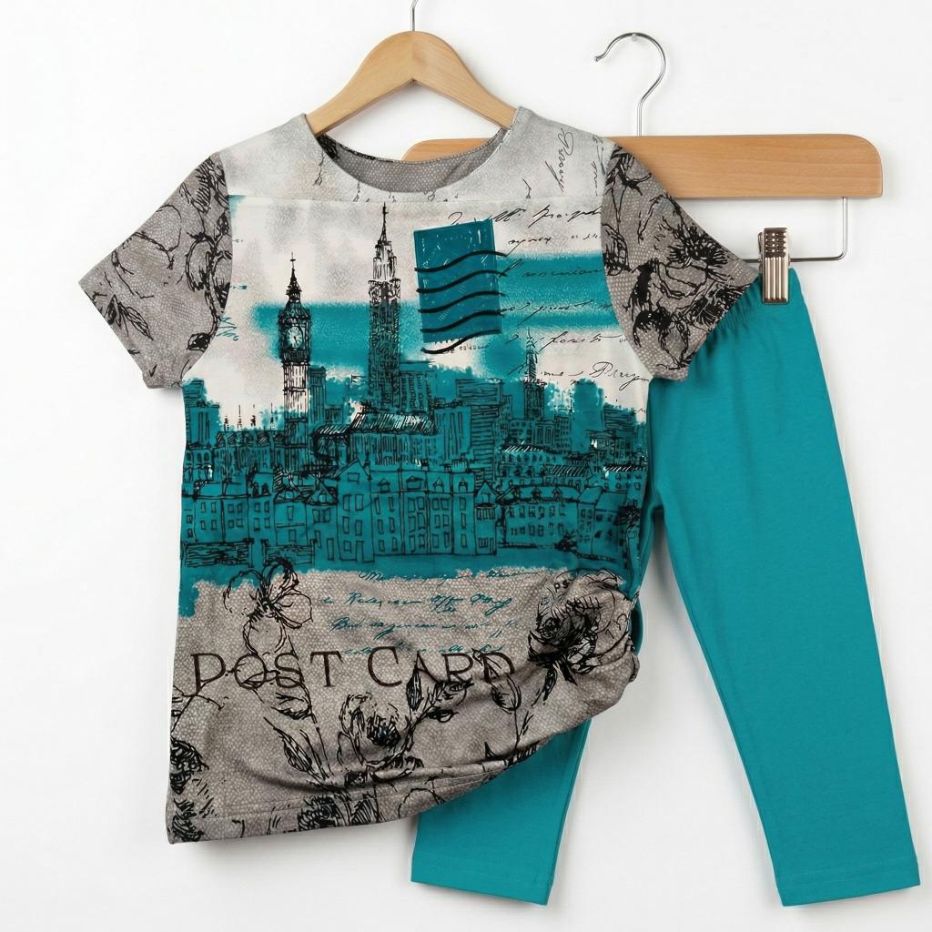 👗 Туника с ефектен DTF печат + клин – впечатляващ дизайн с градски силует, съчетан с нежни флорални елементи и артистични надписи. Свежият тюркоазен акцент придава живот и модерно излъчване, а клинът допълва визията с комфорт и практичност.